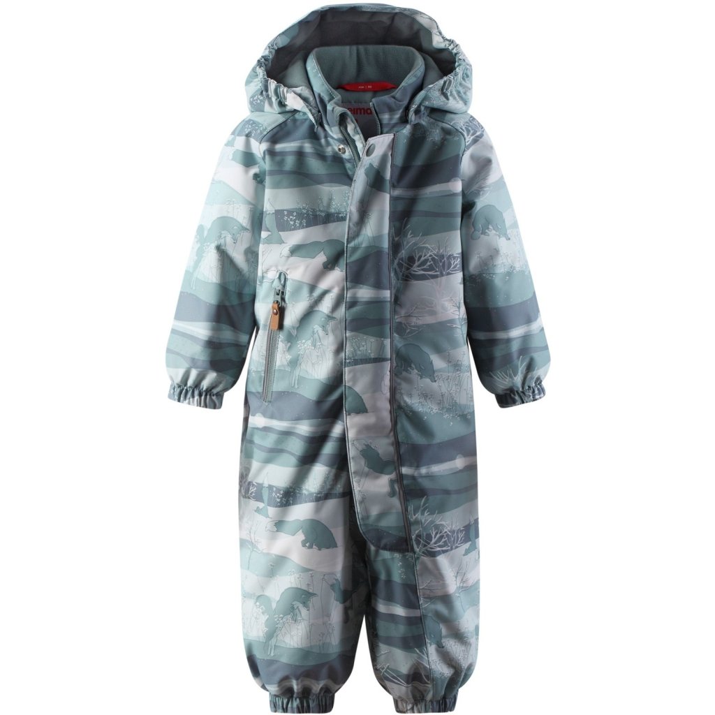 Zimní overal s membránou Reimatec pro batolata. Všechny švy vodotěsně podlepeny, materiál odpuzuje vodu a špínu. Zateplení na zadečku a odnímatelná kapuce se syntetickou kožešinou.