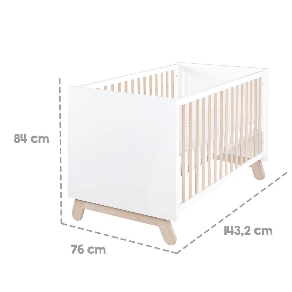 Kompletní dětský pokoj roba Clara zaujme svým trendy a moderním stylem. Sestava se skládá z kombinované postýlky, přebalovacího pultu a 3dveřové skříně. Dětská postel roste s dítětem a lze ji přeměnit na juniorskou postel pomocí skládacích bočnic, které jsou k dispozici samostatně. Lze jej používat do 7 let věku (nebo váhy 50 kg). Horní poloha 3-cestně výškově nastavitelné postýlky je obzvláště pohodlná pro zvedání vašeho dítěte z postele. 3 odnímatelné příčky umožňují vašemu dítěti bezpečně se dostat dovnitř a ven. Postýlka odpovídá aktuálním bezpečnostním normám dle EN 716 – 1:2017 + AC:2019. Přebalovací pult s přebalovacím nástavcem dělá z péče o miminko potěšení pro rodiče i miminko díky své pohodlné přebalovací výšce 93 cm. Bez přebalovacího nástavce slouží přebalovací pult jako komoda. Přebalovací pult odpovídá aktuálním bezpečnostním normám dle EN 12221 – 1+2:2008 + A1:2013. 3-dveřová šatní skříň nabízí dostatek úložného prostoru v dětském pokoji. Vzhledem ke své výšce 200 cm s vámi bude skříň růst, dokud nevyrostete. Výplň dvířek a zásuvek zajišťuje zvláštní pohodlí. Tělo a přední strany v antracitové barvě. Rukojeti a nohy z pravého bukového dřeva. Série dětského nábytku 'Jara' byla vyvinuta v Německu a vyrobena v EU.
