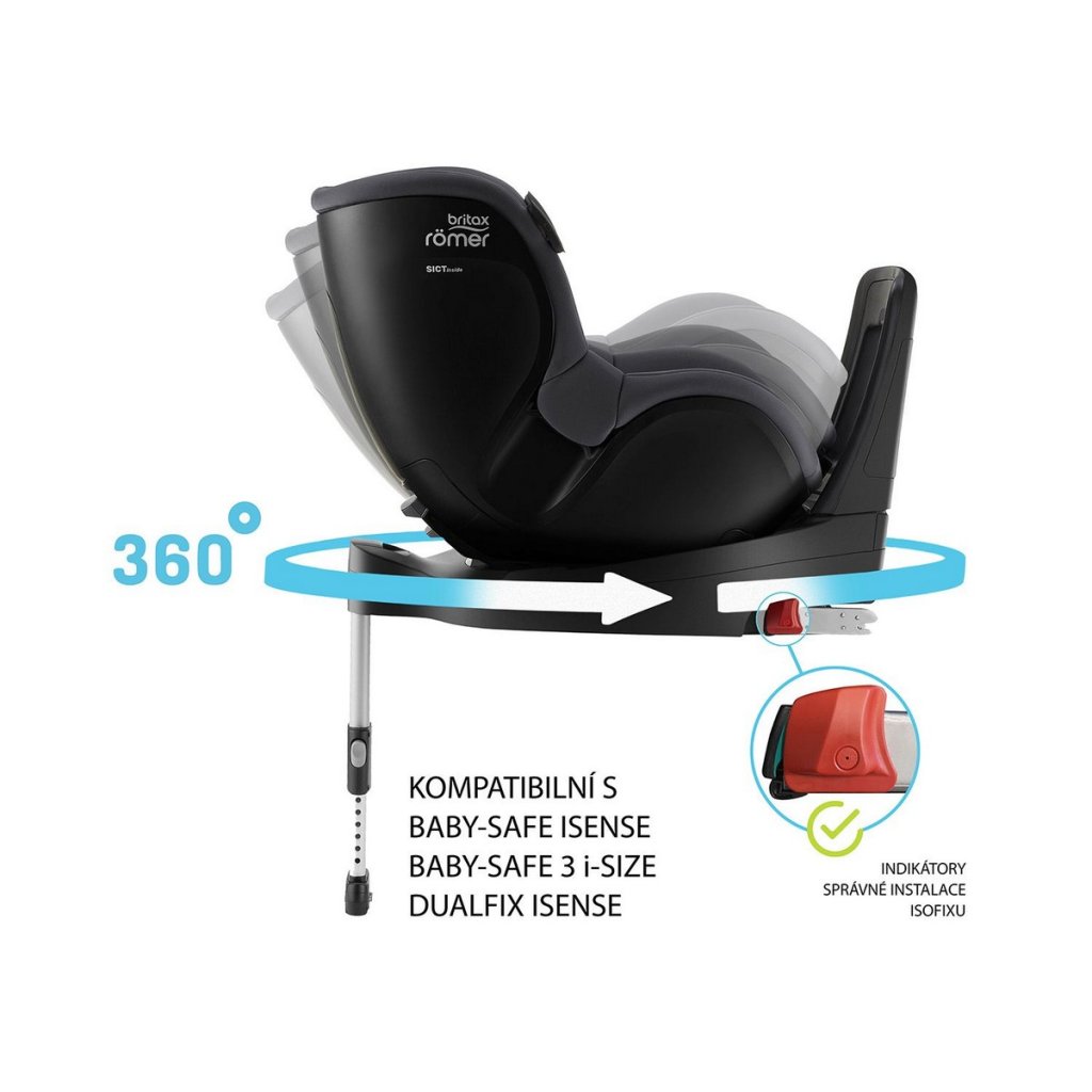 Základna Flex base iSense je použitelná s vajíčky Baby-safe iSense, Baby-safe 3 i-Size a s pokračovací autosedačkou Dualfix iSense, přičemž umožňuje jejich jednoduché a rychlé střídání. Sedačku do základny snadno vložíte i vyjmete, a to jediným kliknutím. Otočná funkce základny vám dovoluje natočit autosedačku směrem ke dveřím auta, což vám usnadní posazení dítěte do sedačky a jeho připoutání. Sedačku Dualfix iSense můžete otočit o 360 stupňů, což umožňuje cestovat po směru jízdy, když dítě přesáhne věk 15 měsíců a výšku 76 cm. U aut se skloněnými sedadly se v sedačce hlavička dítěte snadno naklání dopředu, proto u Flex Base iSense můžete náklon sedačky nastavit až do 6 různých poloh. To vašemu dítku poskytne tu nejlepší kombinaci bezpečnosti a pohodlí. U vajíčka je nejlepší nastavit správný úhel před instalací sedačky. U pokračovací sedačky můžete nastavit úhel do pohodlnější polohy, když vaše batole usne. Důležitou součástí báze je opěrná noha, která zajišťuje její extra stabilitu. Pro bezpečnou instalaci ji nastavíte tak, aby odpovídala výšce, která je pro vaše auto nejlepší, přičemž správné upevnění opěrné nohy vám potvrdí zvuková signalizace. Opěrná noha v kombinaci s bezpečnostním obloukem a systémem Pivot Link minimalizuje sklopný a rotační pohyb a dále snižuje sílu pohybu vpřed vyvíjenou na dítě v případě nehody. Tím ho významně pomáhá chránit.