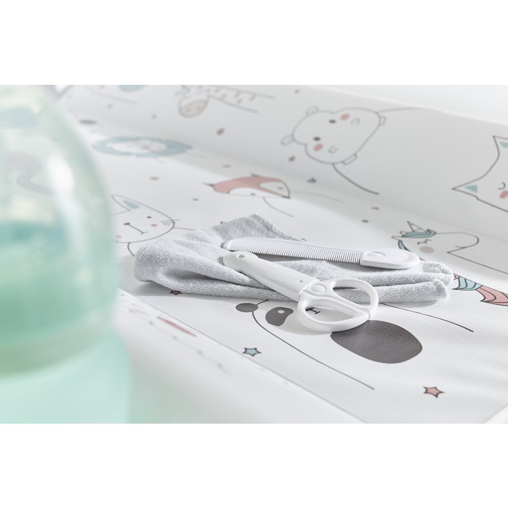 Krásná přebalovací podložka Rotho s vyvýšenými stranami poskytne vašemu děťátku pohodlné a hřejivé místo pro přebalování nebo převlékání. Vnější fólie neobsahuje ftaláty a je odolná vůči vodě a snadno udržovatelná.