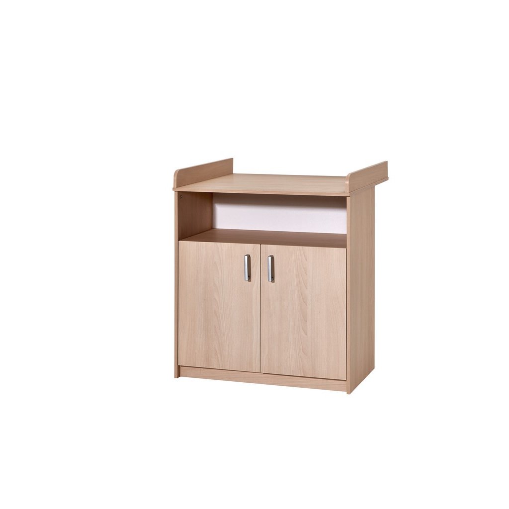 Tato přebalovací komoda nabízí praktický otevřený prostor pro odkládání všeho potřebného při přebalovaní a dvoje dvřírka, za nimiž se nachází jedna police. Součástí komody je samozřejmě i přebalovací nástavec.