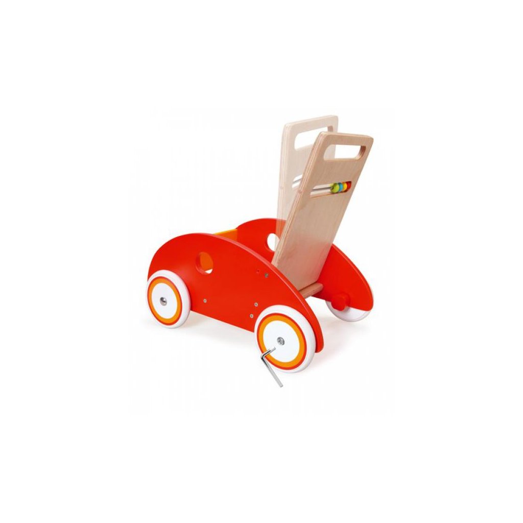 Dřevěné chodítko značky Scratch bude bezpečnou oporou vašeho děťátka při prvních krůčcích. Slouží jako chodítko a zároveň vozítko na hračky. Děti se s ním snadno a rychle naučí bezpečnému pohybu. Toto chodítko s vašimi dětmi poroste, má totiž nastavitelnou výšku rukojeti a také nastavitelný pojezd koleček. Klíčem lze kolečka povolit nebo dotáhnout dle aktuálních schopností dítěte. Chodítko je vyrobeno z kvalitního bukového dřeva a má gumové pneumatiky zajišťující velmi tichou jízdu. Ty navíc chrání podlahu před poškrábáním. Na chodítku se také nachází zábavné kuličkové počítadlo.