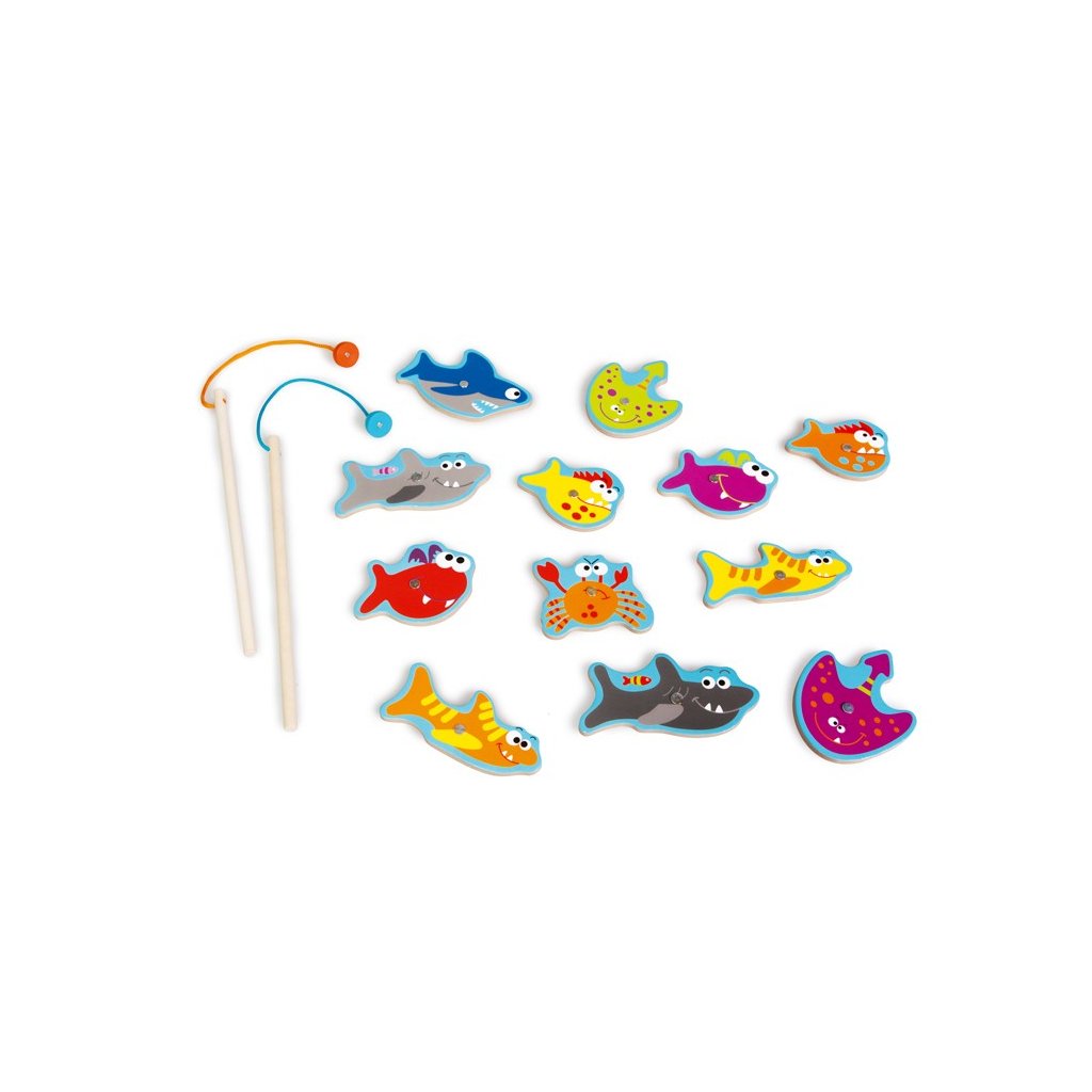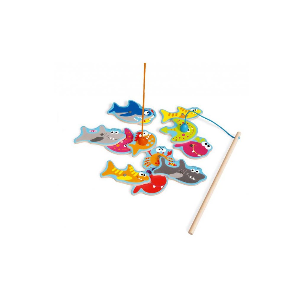Velmi oblíbená hra lovení rybiček Vaše děti určitě zabaví. Sada zubatých rybiček už čeká na šikovného rybáře. Kdo uloví nejvíce nebezpečných rybiček je vítězem. Mladší děti loví rybičky pro zábavu, starší děti mohou soutěžit a rybičky počítat podle počtu ulovených rybiček nebo podle bodů umístěných na zadní straně každé rybky. Hra procvičuje soustředění a jemnou motoriku. Balení obsahuje 12 rybiček, 2 pruty zabalené v pěkné dárkové krabičce ve tvaru rybičky. Hra je vhodná pro malé rybáře i rybářky od 18 měsíců.