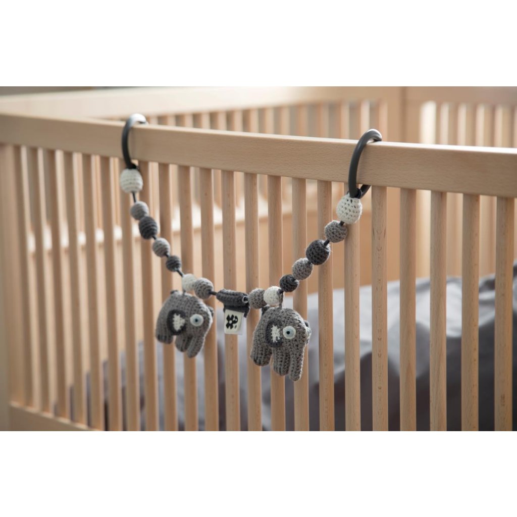 Tento řetěz na kočárek je skvělou dekorací a zároveň smysly stimulující a aktivující doplněk ke kočárku, kolébce, autosedačce atd. Protože byl tento řetěz ručně háčkován, mohou se vyskytnout odchylky ve vzhledu jednotlivých výrobků. Vzory jsou vyrobeny z organické bavlny a vyplněny recyklovaným polyesterem. Připevněte jej na stříšku kočárku nebo autosedačky pomocí dvou plastových kroužků, které neobsahují BPA, ftaláty, PFOA ani PFOS. Stimuluje a aktivuje smysly vašeho dítěte a zpříjemní veškerý čas strávený v kočárku či autosedačce. Řetěz na kočárek splňuje platné bezpečnostní požadavky na šňůry určené k zavěšení na postýlky, kolébky, kočárky apod. Testováno a schváleno v souladu s normami EN71-1, EN71-2 a EN71-3 - evropskou směrnicí o bezpečnosti hraček.