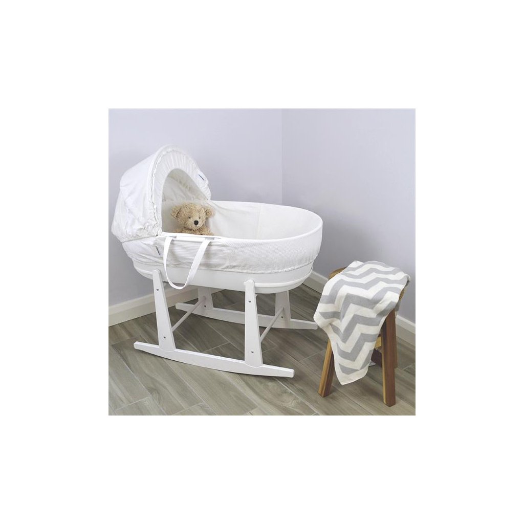 Krásný, robustní houpací stojan jemně uklidní Vaše děťátko. Je dokonale dimenzován tak, aby doplnil Shnuggle Mojžíšův koš. Stojan je lehký, kompaktní a má zakřivenou základnu pro umožnění mírného kývání koše. Záchytné tyče zajistí, že koš bude pevně držet na svém místě. Vyrobeno ve Velké Británii z borovice, která pochází z obnovitelných zdrojů.