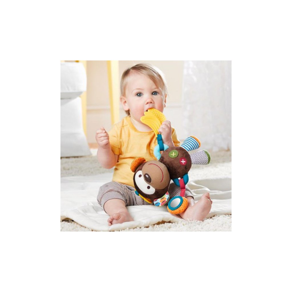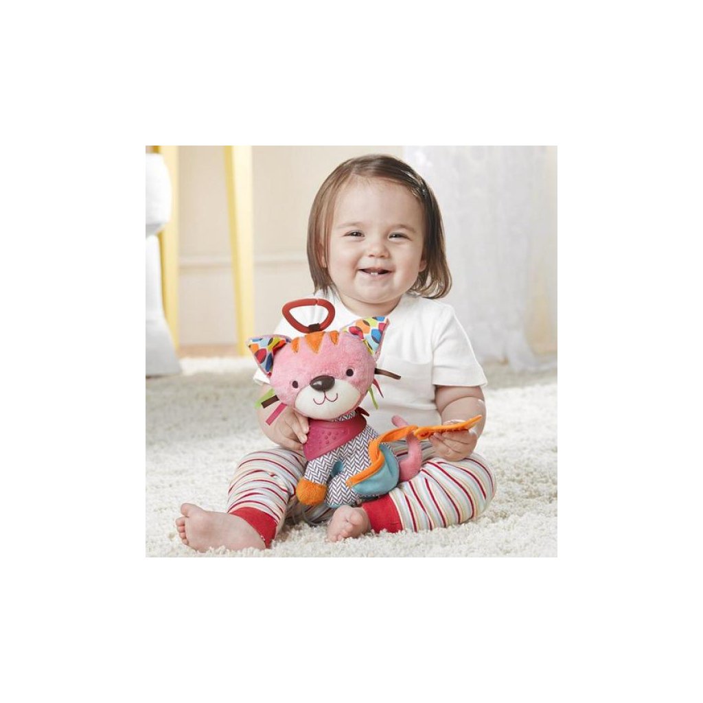 Malé ručky Vašeho dítěte budou díky hračce na kočárek Skip Hop neustále zabaveny. Budou zkoumat různé materiály, textury a zvuky, čímž je podpořen rozvoj jemné motoriky a smyslů dítěte. Tato krásně barevná hračka, která chrastí a zvoní, je ideálním společníkem jak na doma, tak na cesty. Vybrat si můžete jedno ze čtyř veselých zvířátek. Díky poutku ho můžete kamkoliv pověsit.
