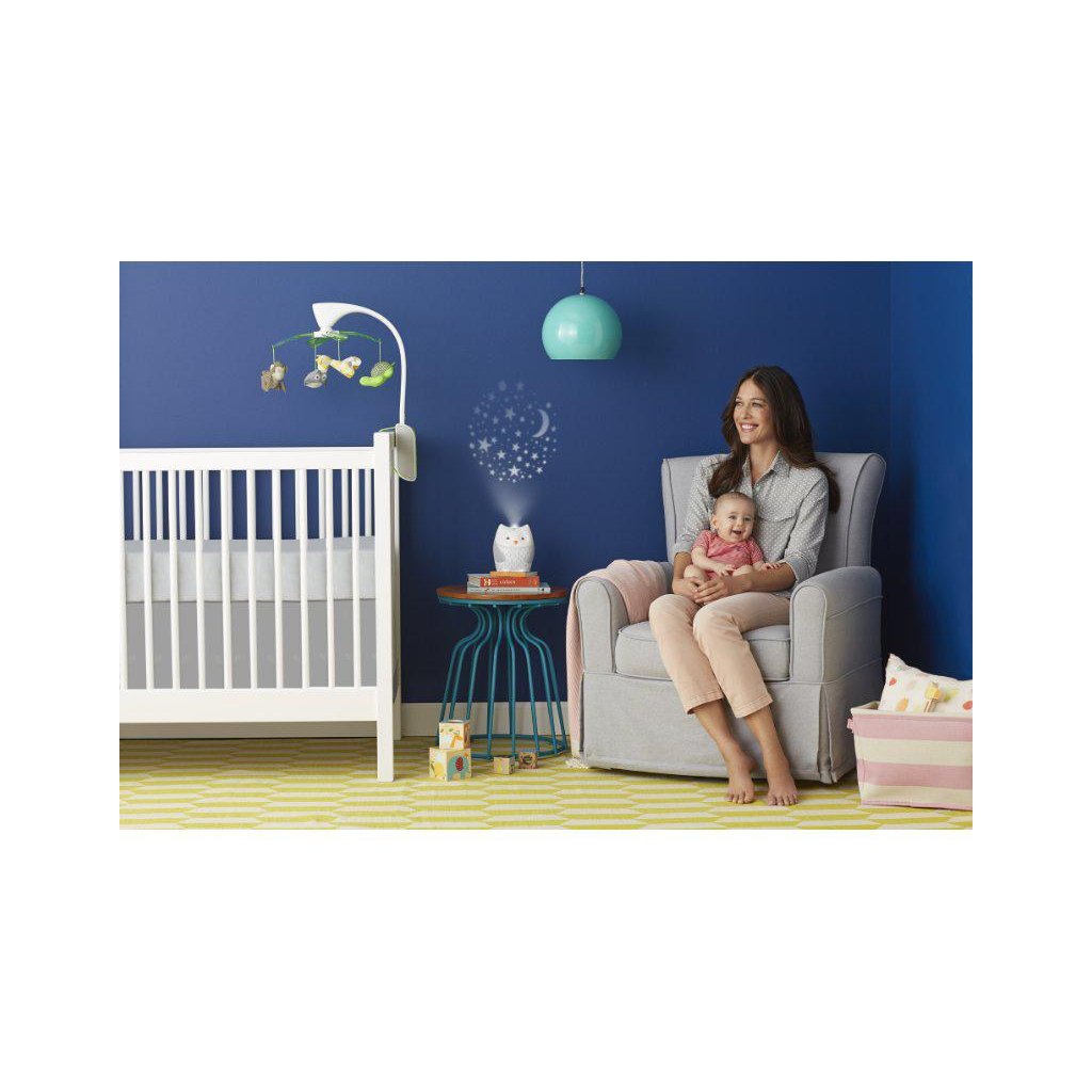 Noční světýlko s projektorem pomáhá uklidnit dítě před spaním. Sovička má svítící bříško, které poskytuje příjemné noční světlo, které neruší, ale naopak uklidňuje. Sovička je vybavena také projekcí, kterou lze nastavit buď na strop, nebo na stěnu. Sovička nabízí 8 melodií s možností ovládání hlasitosti. Vybírat můžete ze 4 melodií a 4 uklidňujících přírodních zvuků. Sovička má funkci automatického vypnutí (15, 30 nebo 60 minut) a krásné textilní detaily.