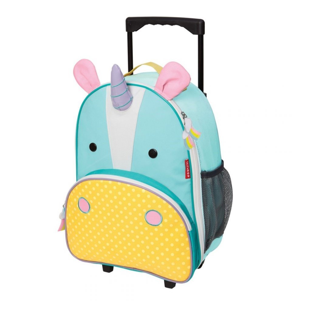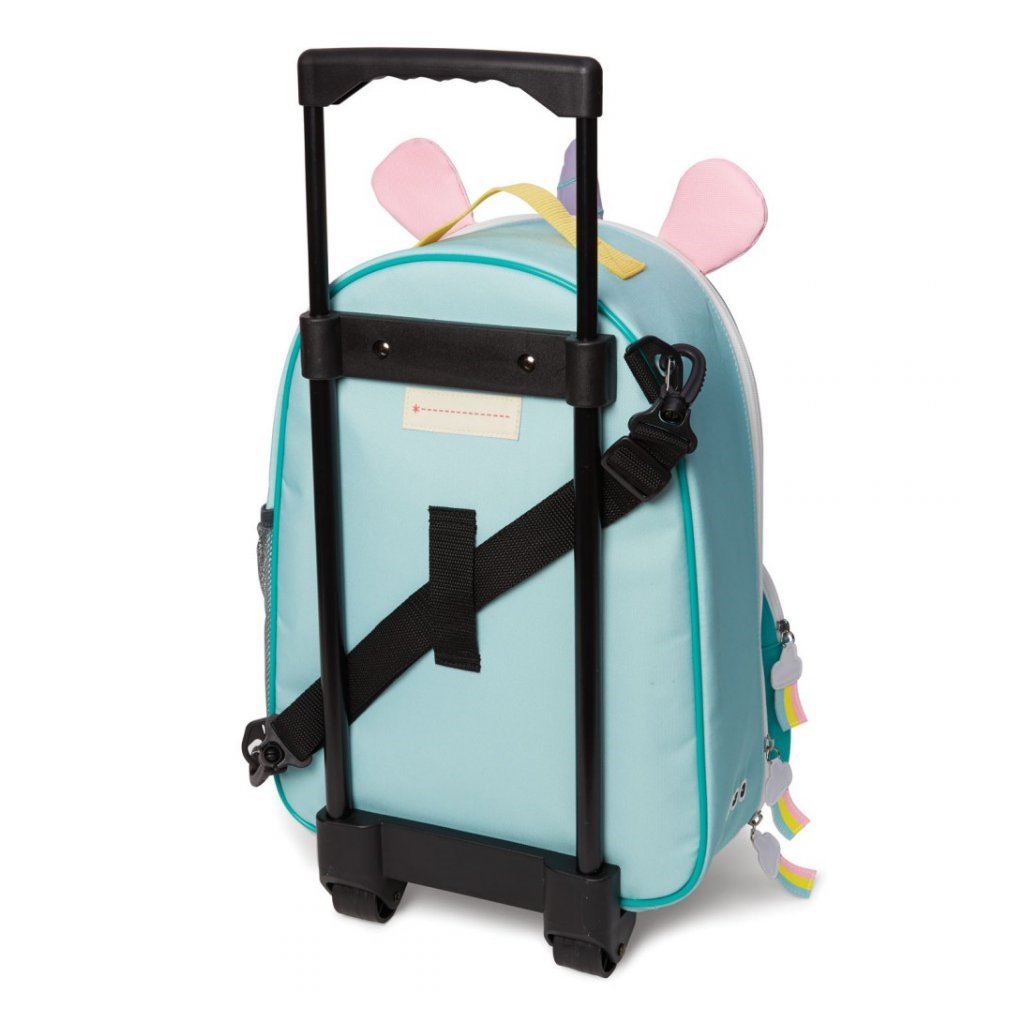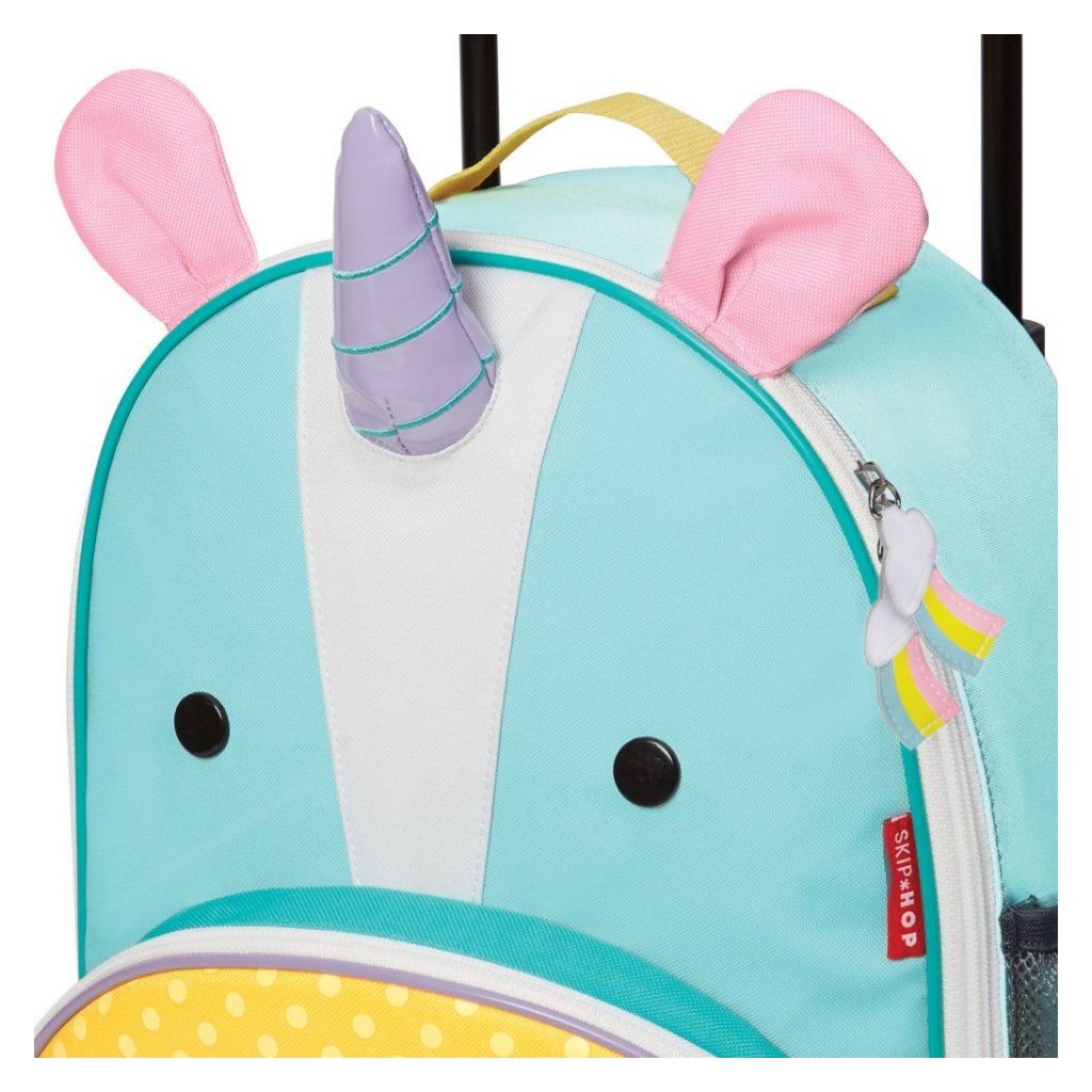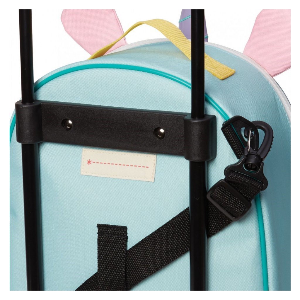 Jednorožec v podobě kufru Skip Hop v jemných pastelových barvách bude doprovázet malé slečny na cestách. Propracované detaily ladí s veselými motivy na zipu. Přední kapsa uschová oblíbené hračky na dosah ruky. Odnímatelný nastavitelný popruh pro rodiče v čase, kdy už je děťátko unaveno. Vytahovací rukojeť - až o 33cm pro malé cestovatele. Kufřík je dostatečně pevný jak pro každodenní používání, tak pro daleké cesty za dobrodružstvím.