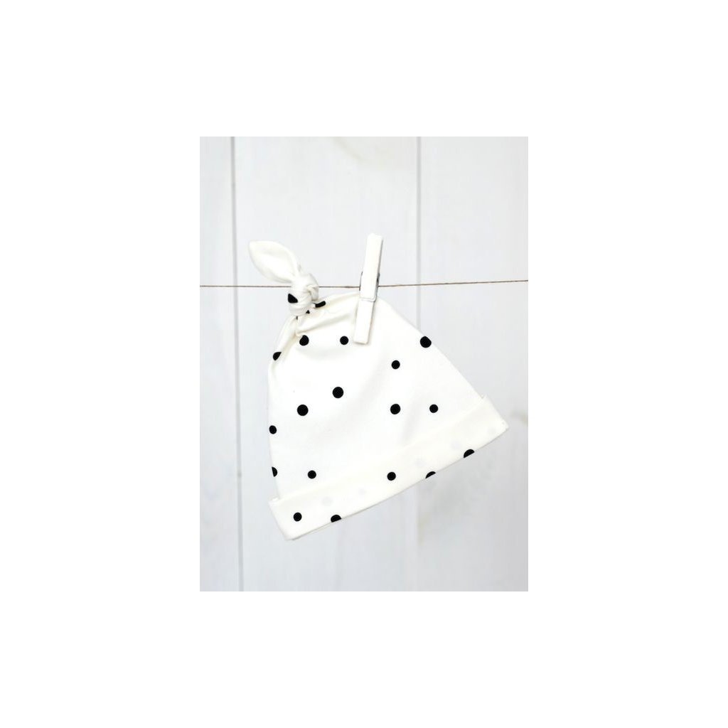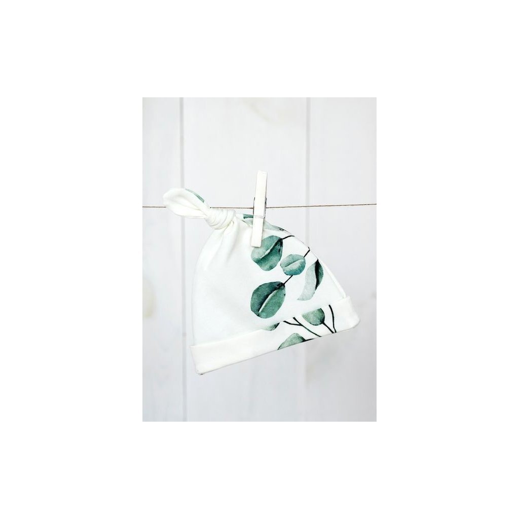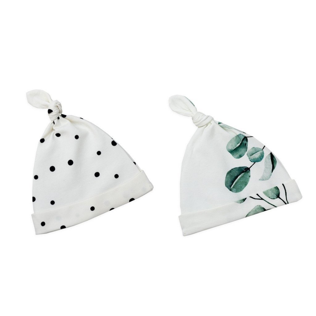 Dětské čepice s motivem černých teček a eukalyptu jsou skvělým doplňkem výbavičky pro miminko. Čepičky jsou zakončeny roztomilým uzlíkem, který malým miminkům úžasně sluší. Sada je určena dětem od 0 do 2 měsíců. Čepičky jsou vyrobeny z bavlny nejvyšší kvality s 8% obsahem elastanu. Díky tomu se perfektně přizpůsobí dětské hlavičce a zajistí mu dokonalé pohodlí. Čepice obdržíte v krásné krabičce. Doporučujeme jako dárek k narození miminka, křtinám nebo pro budoucí maminku na baby shower.