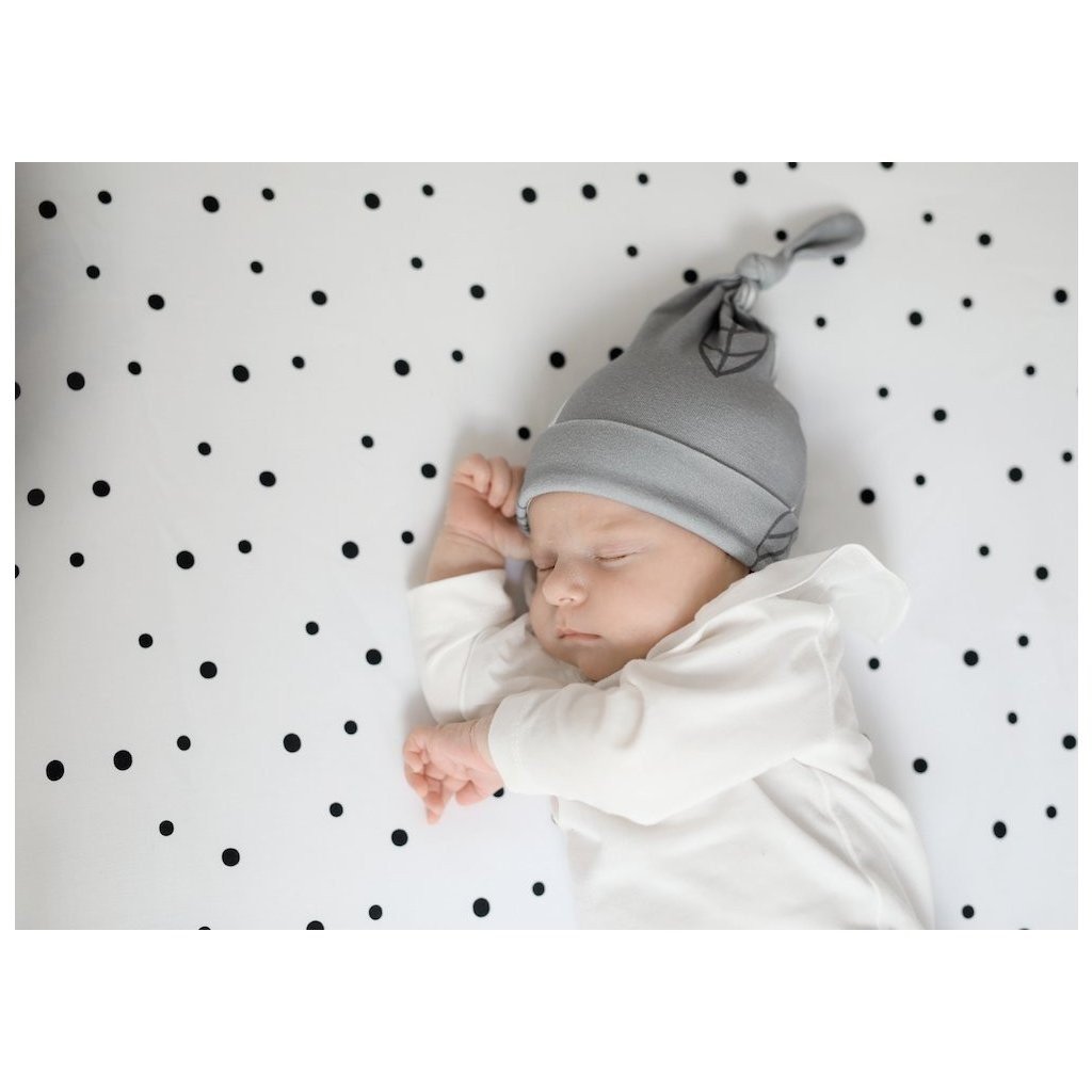 Dětské čepice pastelová šedá a šedé tečky jsou skvělým doplňkem výbavičky pro miminko. Čepičky jsou zakončeny roztomilým uzlíkem, který malým miminkům úžasně sluší. Sada je určena dětem od 0 do 2 měsíců. Čepičky jsou vyrobeny z bavlny nejvyšší kvality s 8% obsahem elastanu. Díky tomu se perfektně přizpůsobí dětské hlavičce a zajistí mu dokonalé pohodlí. Čepice obdržíte v krásné krabičce. Doporučujeme jako dárek k narození miminka, křtinám nebo pro budoucí maminku na baby shower.