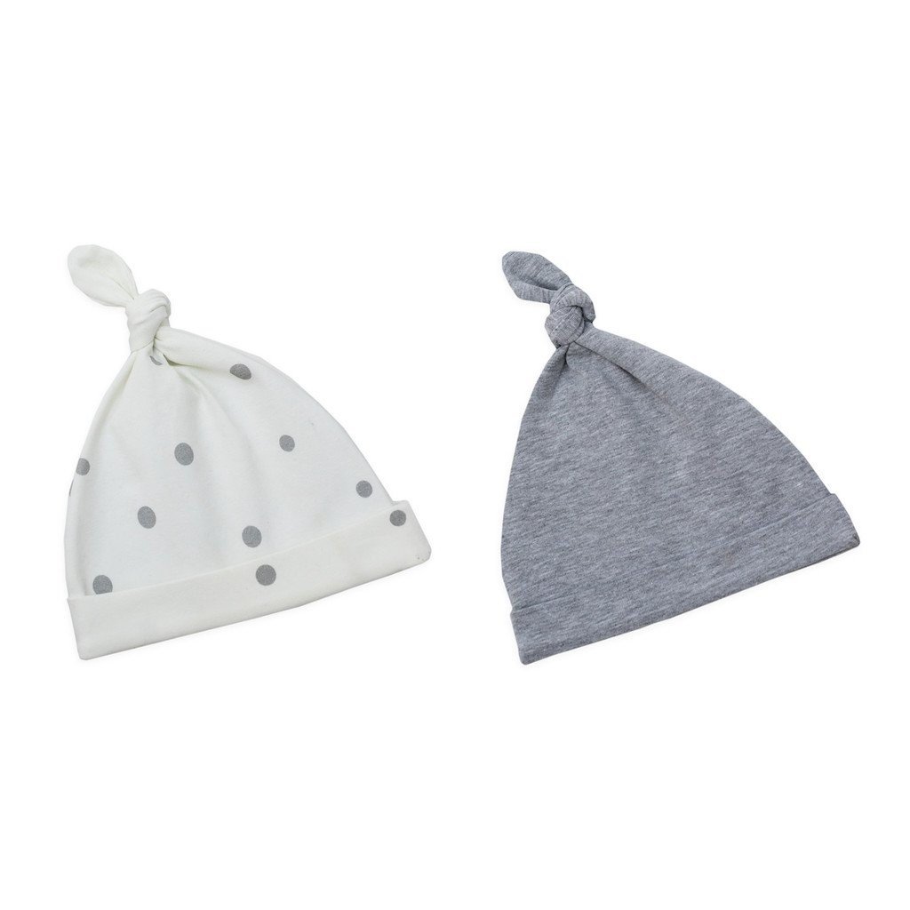 SLEEPEE Dětské čepice sada dvou kusů 0 - 2 měsíce Pastelově šedá/Šedé tečky