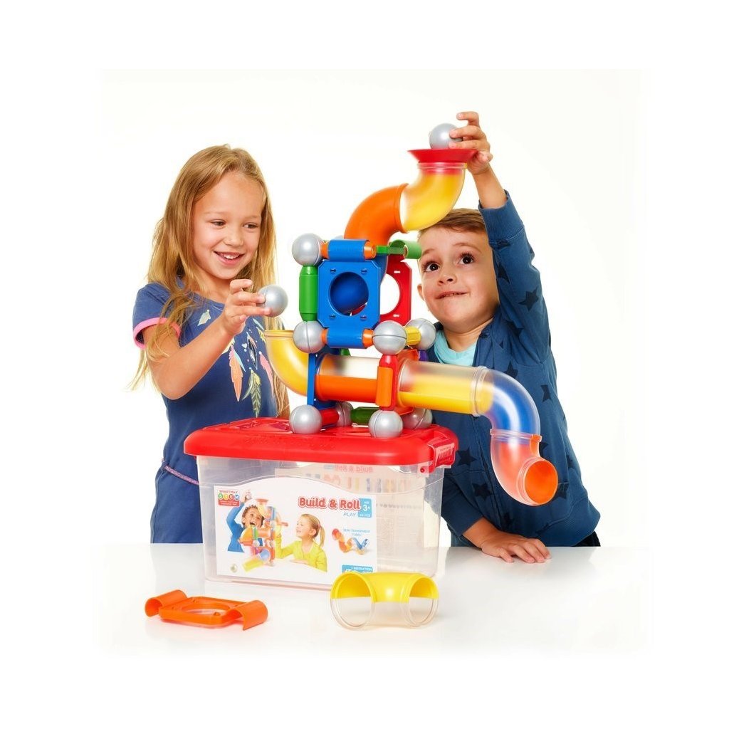 Magnetická kuličková dráha Smartmax s magnetickými díly je ideální k vytvoření jedinečné kuličkové dráhy. Tato magnetická stavebnice představuje zábavnou hračku pro malé děti od 3 let. Přitahování a odpuzování magnetů je ohromí na jejich cestě za poznáním. Jednotlivé magnetické díly se jednoduše spojují jedním kliknutím. Perfektní velká sada magnetické stavebnice pro stavbu kuličkové dráhy. V balení najdete 15 ks tyček, 12 ks kuliček a 17 ks stavebních prvků kuličkové dráhy. Jednotlivé díly jsou dostatečně velké i pro malé dětské ruce. Vše je uloženo v praktickém plastovém kontejneru. Červené víko slouží jako podkladová deska pro stavbu.