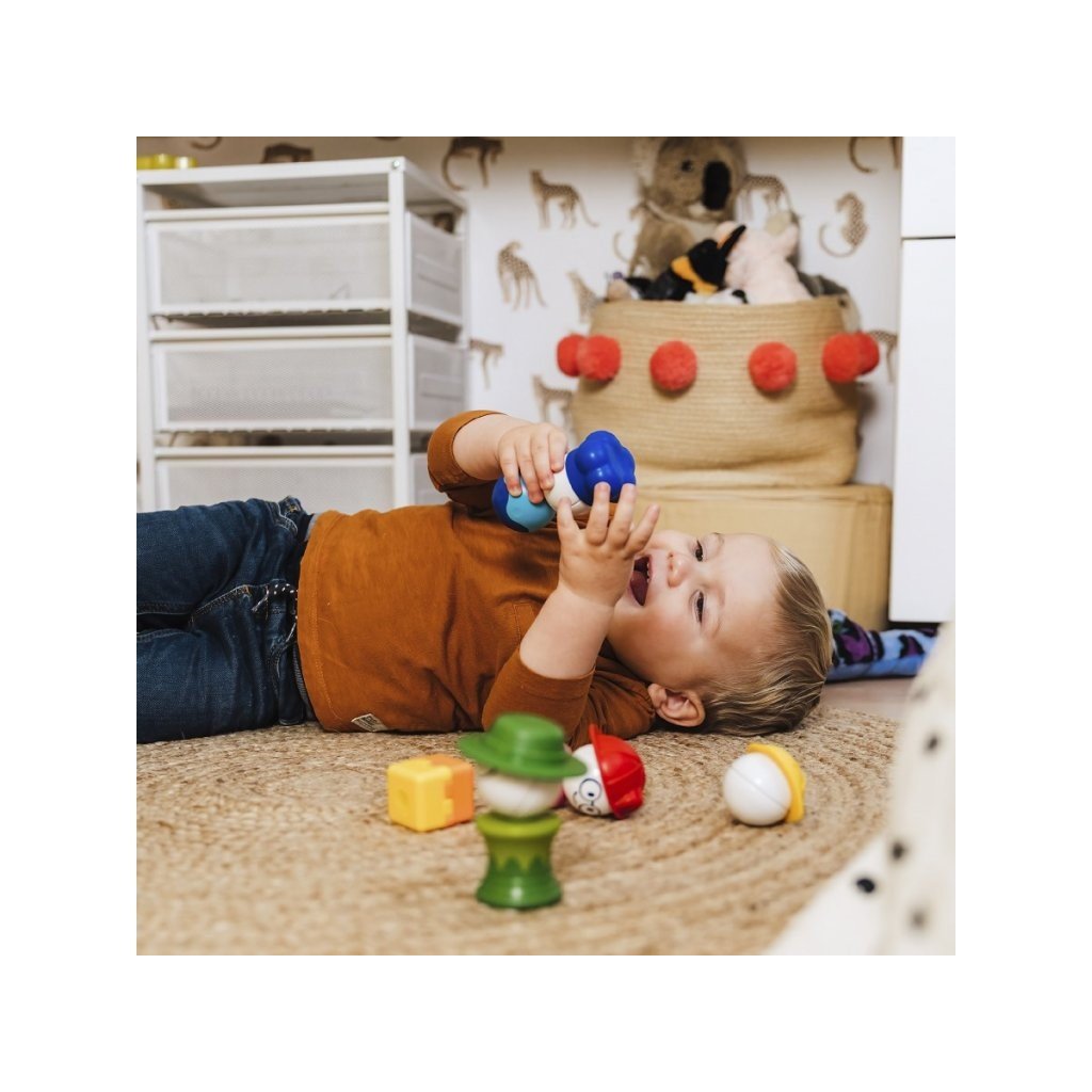 Magnetická hra Moji první lidé je určena pro malé děti ve věku od 1 do 5 let. Jde o zábavnou hru s magnetickými dílky, ze kterých si děti spojují legrační obličeje s různými klobouky a těly. Sada obsahuje 4 obličeje, 4 těla, 4 klobouky. Děti si vytvoří kuchaře, stavitele, zahradníka, hasiče. Nebo mohou zapojit fantazii a vytvořit si vlastní vzhled lidí. Děti pomocí hry objevují kouzelný svět magnetismu, procvičí si koordinaci ruky a oka a jemnou motoriku. Tuto sadu lze kombinovat se všemi ostatními sadami SmartMax.