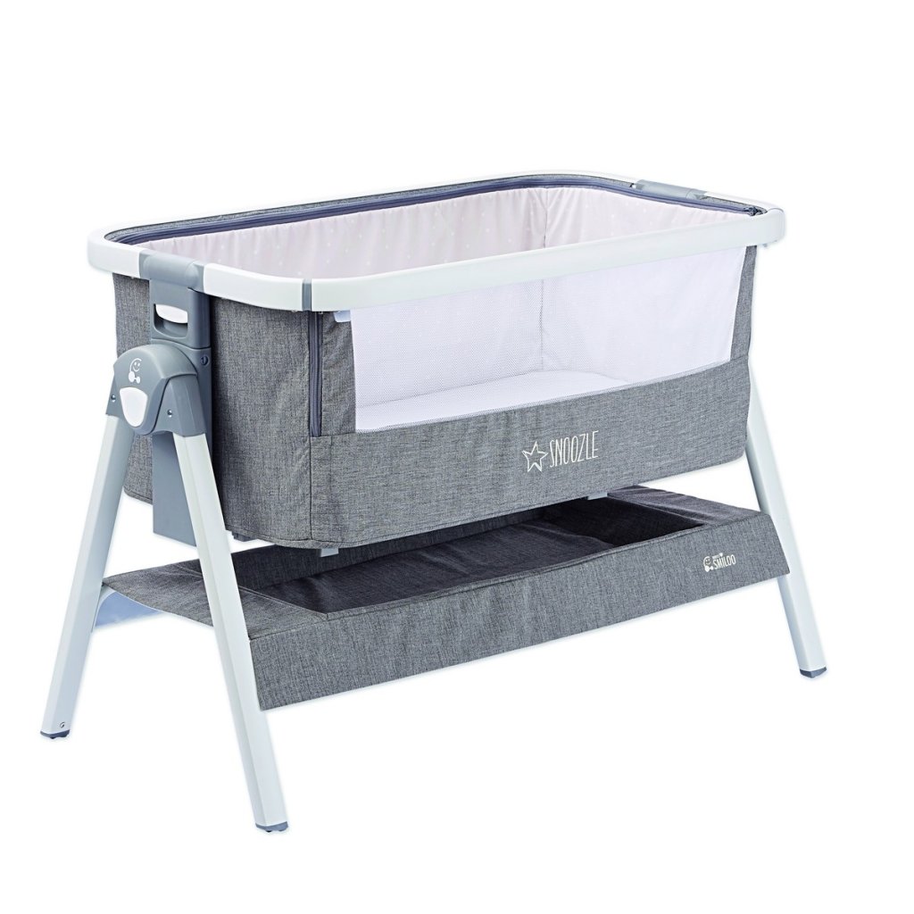 Smiloo Snoozle je krásná postýlka v moderním designu použitelná buď samostatně v prostoru, nebo lze připnout k rodičovské posteli.