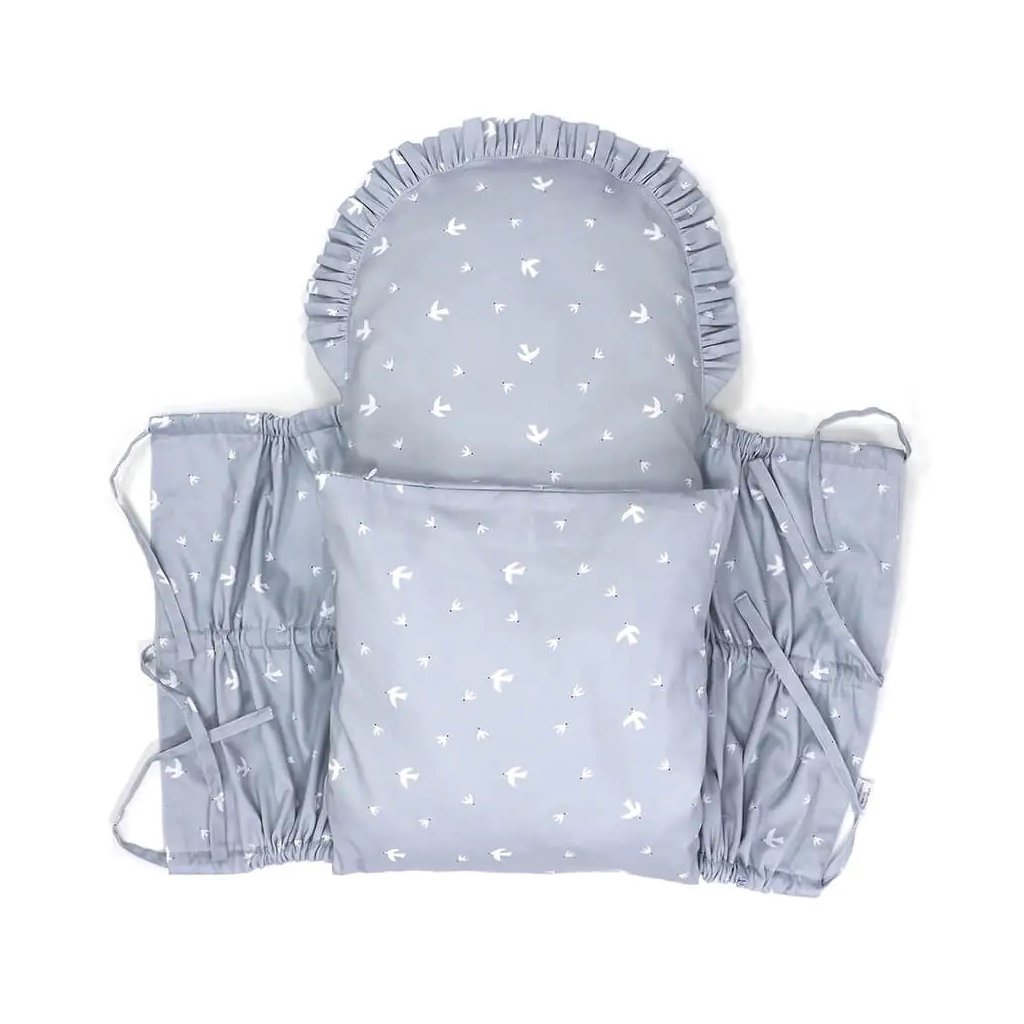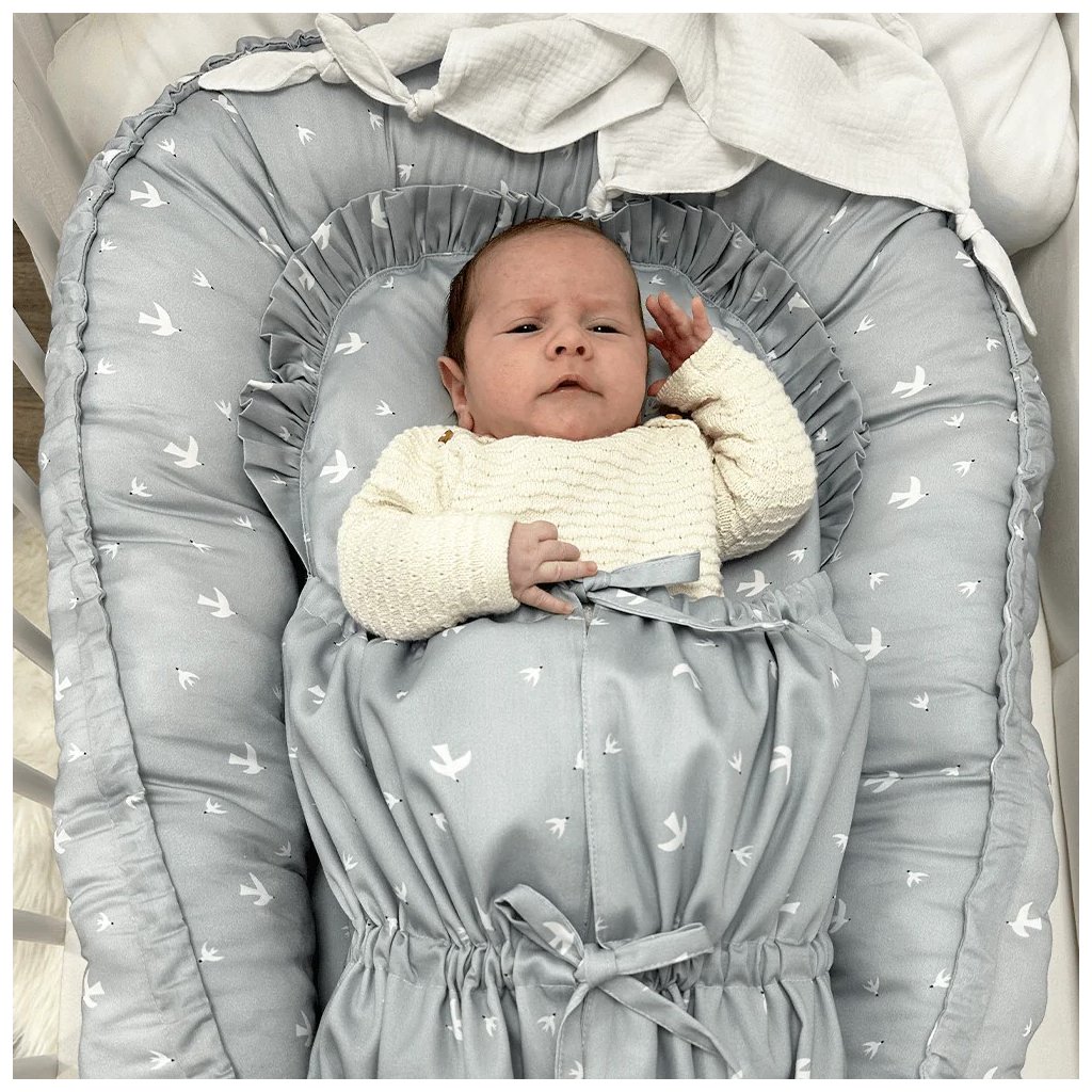 Peřinka pro miminko se dodnes používá v mnoha porodnicích a také v dnešní době se k jejímu používání stále častěji vracíme. Její tvar umožňuje lepší manipulaci s děťátkem, protože je v ní děťátko oproti zavinovačce stabilněji zavinuté, ale zároveň má dostatek prostoru pro pohyb nožiček. Použití klasické peřinky se tedy doporučuje bezprostředně po narození děťátka a v prvních týdnech jeho života. Právě v tomto období patří do základní výbavy každé maminky a je její každodenní praktickou pomůckou. Peřinka je vyrobena z kvalitního bavlněného saténu s vlastním originálním designem. Tento materiál je na dotek ve srovnání s klasickou bavlnou mnohem příjemnější a hebčí, a proto zaručí vašemu miminku příjemné teplo. Má tvar obdélníku, a zaoblenou stranu zdobí malý volánek. Zavazuje se třemi šňůrkami, pevně všitými v bočních dílech, takže nemusíte mít obavu, že by se vám šňůrka mohla vyvléct. Vnitřní výplň lze vyjmout, čímž značně zjednodušuje její údržbu a prodlužuje její životnost. Všechny použité materiály mají certifikát OEKO TEX Standard 100 tř.1, což znamená, že výrobek splňuje nejpřísnější normy EU a je vhodný i pro dětičky do 3 let.