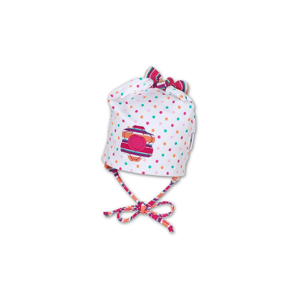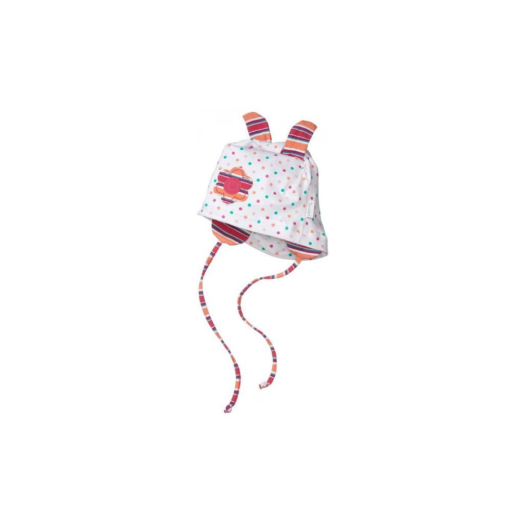Tato bavlněná čepička je prodyšná a jemná k dětské pokožce. Navíc je vybavena ochranným faktorem UV 15+, takže je ideální na nošení v letních dnech. Ouška na vrchu mohou být svázaná či volně. Díky tkaničkám čepice skvěle drží.