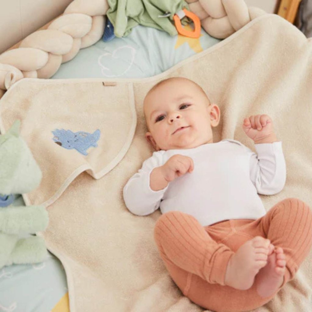 STERNTALER Kojenecká osuška s kapucí 80x80 cm Dino Rexi Beige