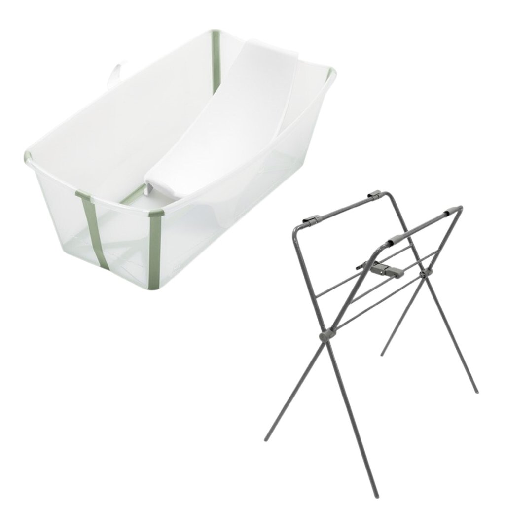 STOKKE Flexi Bath Bundle Transparent Green + DÁREK stojan na vaničku