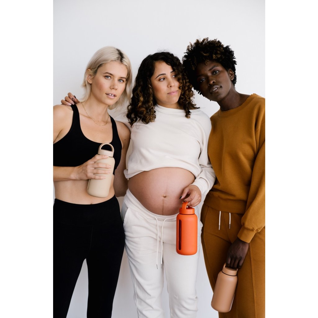 Extrémně minimalistická a praktická skleněná láhev, která zajistí správnou hydrataci pro těhotné ženy a ženy po porodu. Láhev pro monitorování vody je speciálně navržená tak, aby splnila doporučené denní dávky vody pro ženu během těhotenství a v období kojení. Pro splnění denního pitného režimu lahev doplňte 3x v těhotenství a 4x v šestinedělí a období kojení. Lahvička Mama ukazuje doporučené množství vody a poskytuje jednoduchého a intuitivního průvodce, který vám toho pomůže dosáhnout. Jedná se o nejjednodušší nástroj, který vám pomůže vytvořit optimální prostředí pro výživu a vývoj vašeho miminka a také pro péči o sebe samu. Lahev má široké hrdlo na pití a vrchní držák pro pohodlné nošení. Brčko s víčkem jsou samostatně k dokoupení.