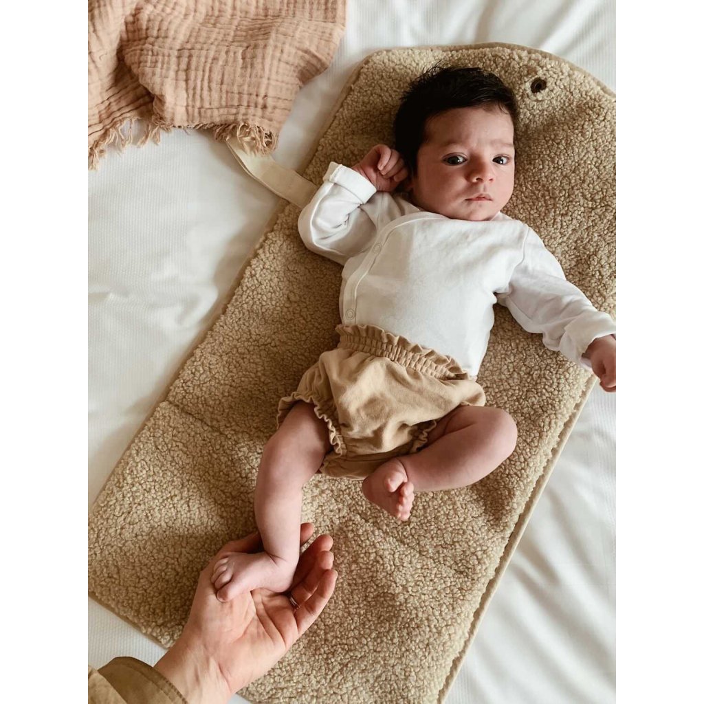 Měkoučká přebalovací podložka, ideální na cesty nebo výlety. Podložku stačí složit, přibalit ji do své tašky a můžete vyrazit. Navíc skvěle ladí s taškou Mom bag Teddy.
