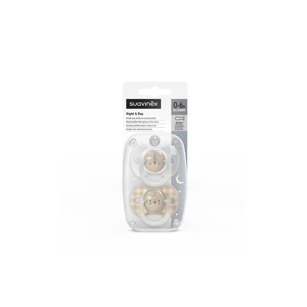 SUAVINEX Den & Noc Šidítko fyziologické silikon 0-6 m 2 ks Krémový lev