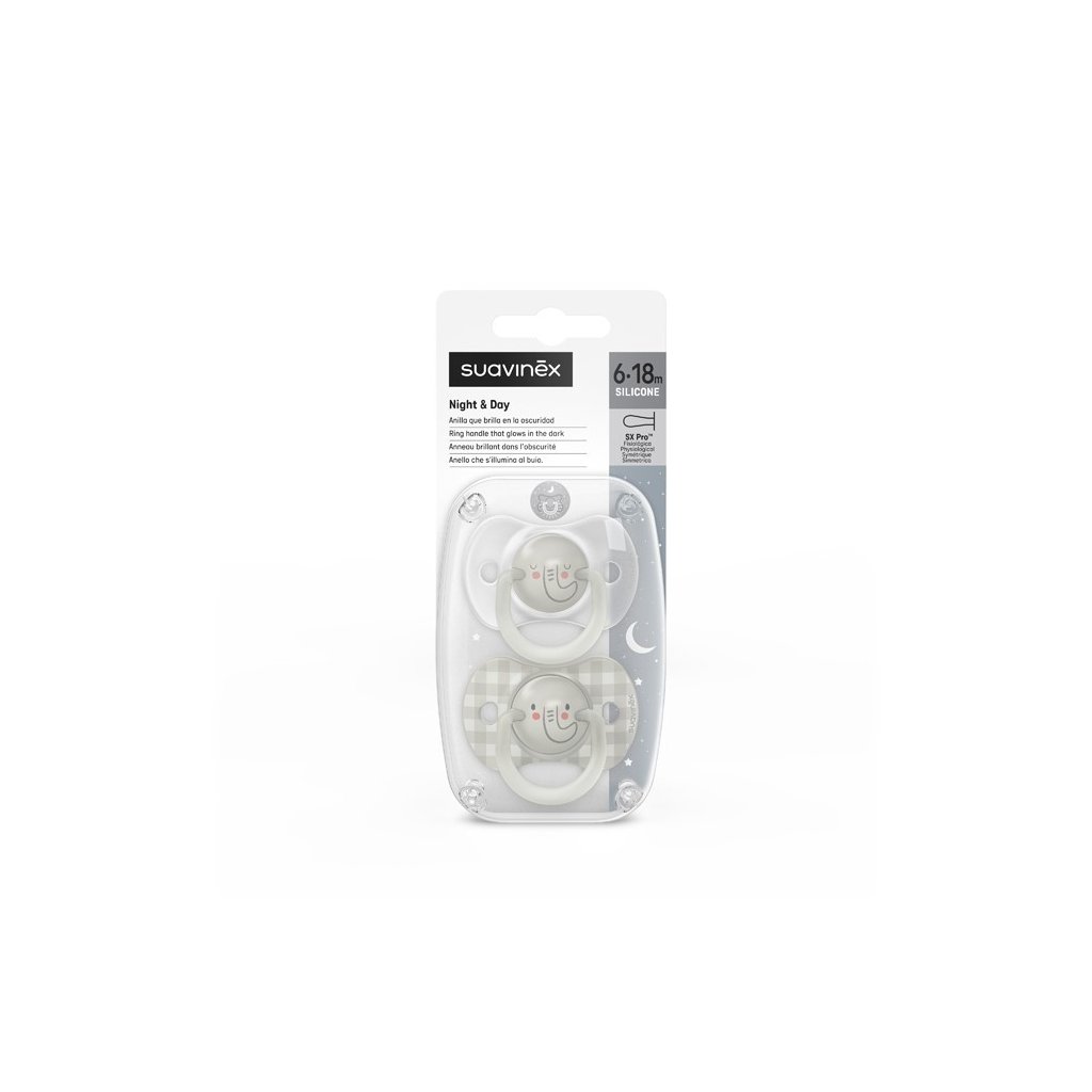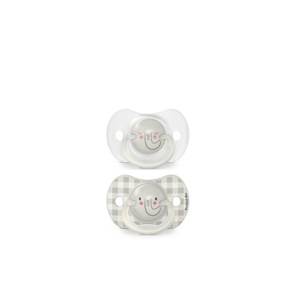 SUAVINEX Den & Noc Šidítko fyziologické silikon 6-18 m 2 ks Šedý slon