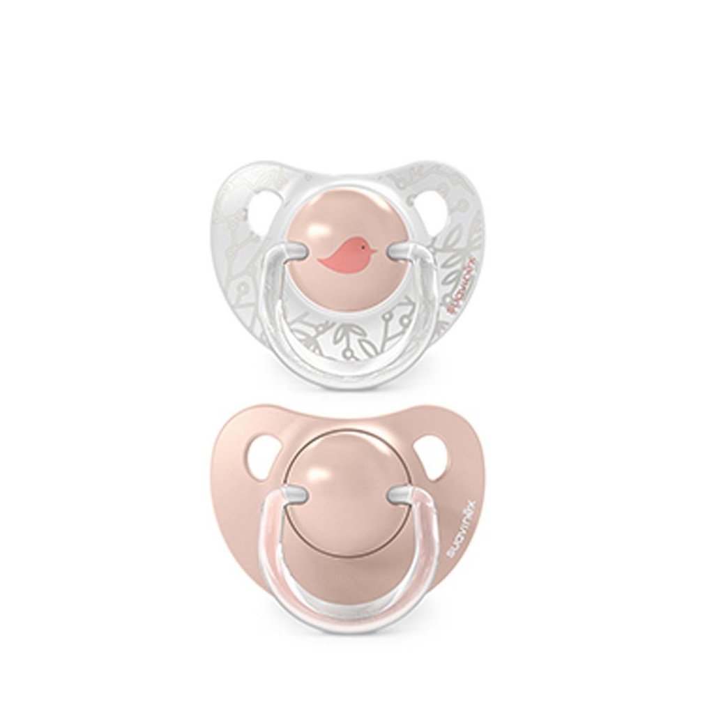 SUAVINEX Dudlík anatomický silikon Birdies růžový 0-6 m 2ks