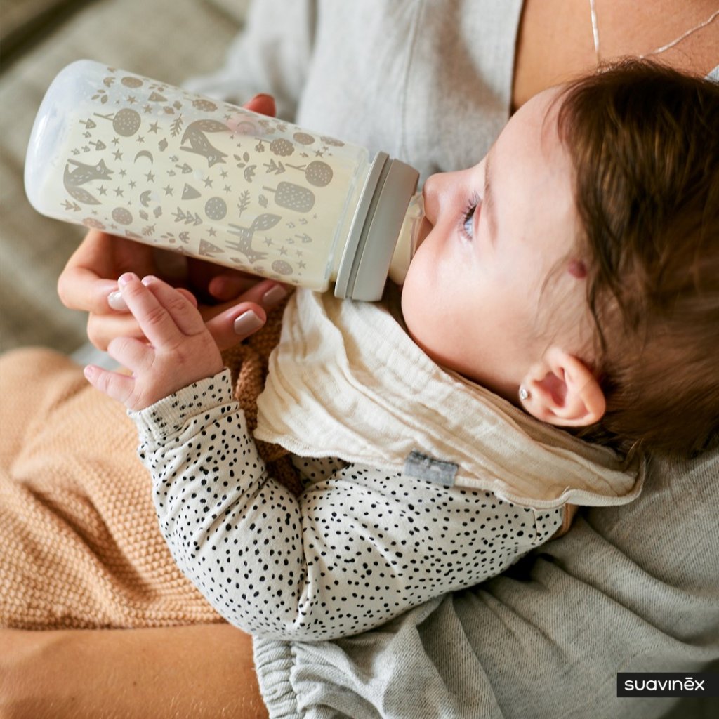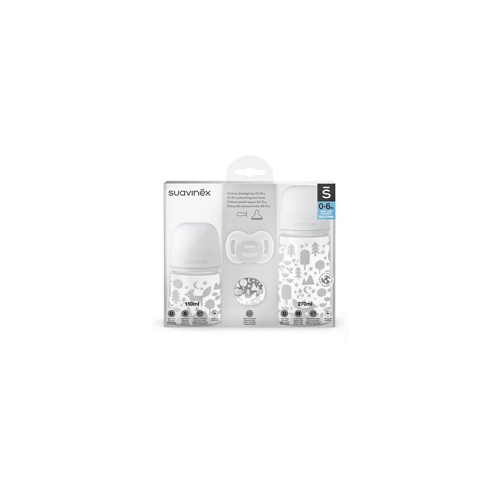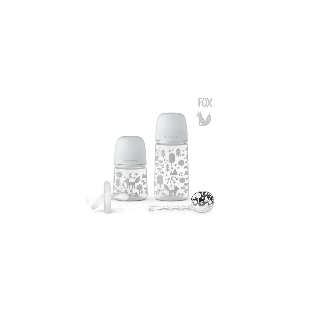 SUAVINEX Sada Lahev 270ml + 150ml + celosilikonový dudlík 0-6 m + klip Fox