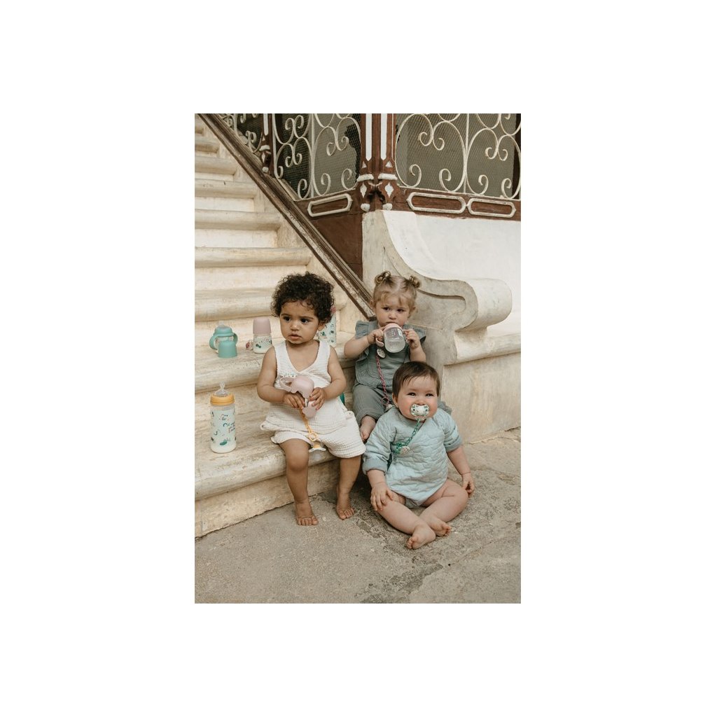 První láhev s oušky se speciální SX ProTM antikolikovou savičkou usnadňuje přechod z kojenecké láhve na pití z hrníčku či sklenice. Silikonové pítko je měkké a materiálově shodné se savičkami kojeneckých lahví a dudlíků SX ProTM . Proto ho Vaše děti přijmou rychleji než běžná tvrdá pítka. Ouška lze nasadit na jiné láhve Suavinex z kolekce Bonhomia, Dreams, Gold Premium, Hygge, Premium, Joy, Memories, Walk. Nelze je nasadit na láhve Zero.Zero, skleněné verze lahví a Colour Essence láhve.