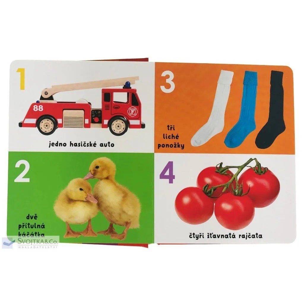 V tomto leporelu určeném těm nejmenším "čtenářům" jsou představeny základní čísla a principy počítání. Děti si mohou vyzkoušet základní počítání předmětů, které znají ze svého okolí. Kromě toho si také procvičí rozpoznávání barev a přiřazování stejných či podobných věcí. Měkká obálka a oblé rohy umožní dětem pohodlné prohlížení a pevné stránky zaručí, že knížka vydrží i "usilovné" čtení. Na stránkách kromě základního počítání lze najít i složitější úkoly - Je na obrázcích stejný, či jiný počet kostiček? Všimneš si čísel na předmětech? Které číslo následuje v řadě? A na posledních stránkách se dokonce nachází 100 neposedných kuřátek!