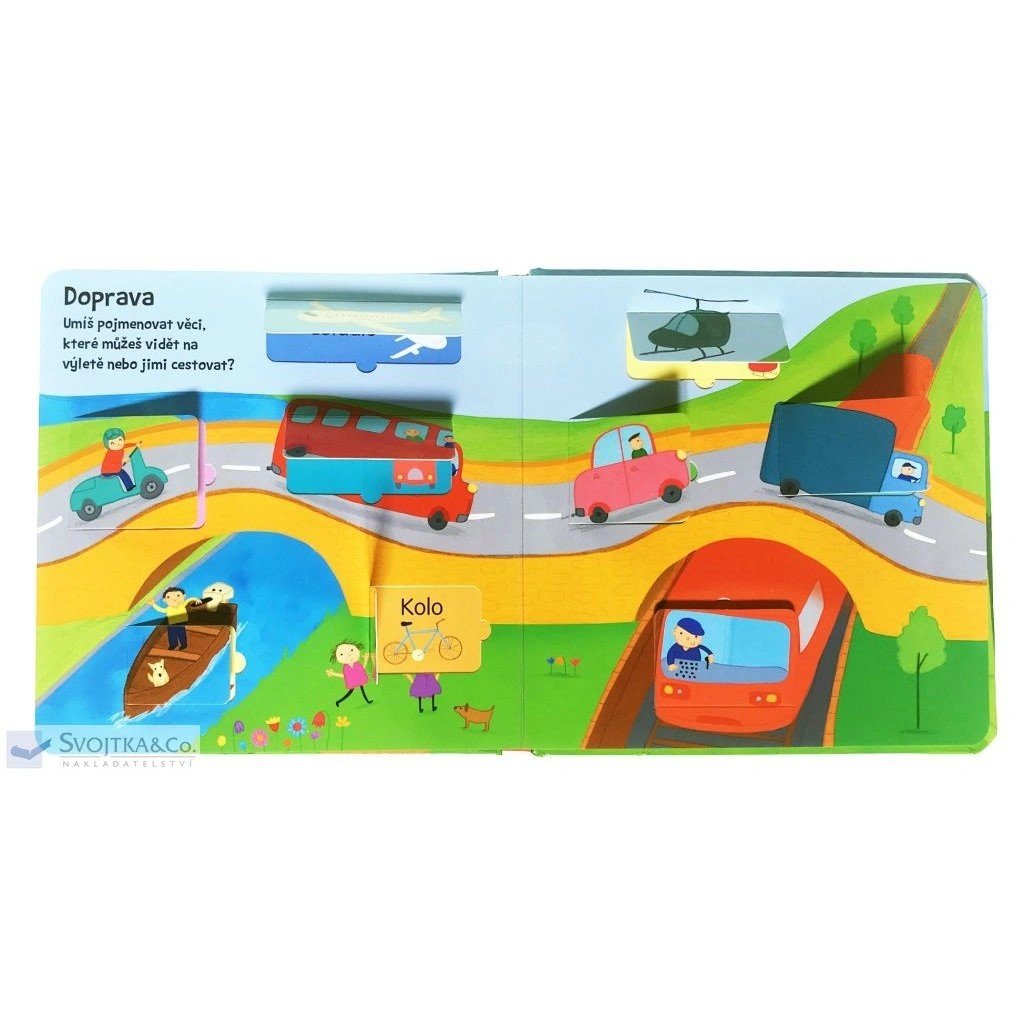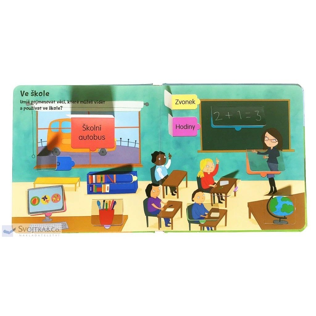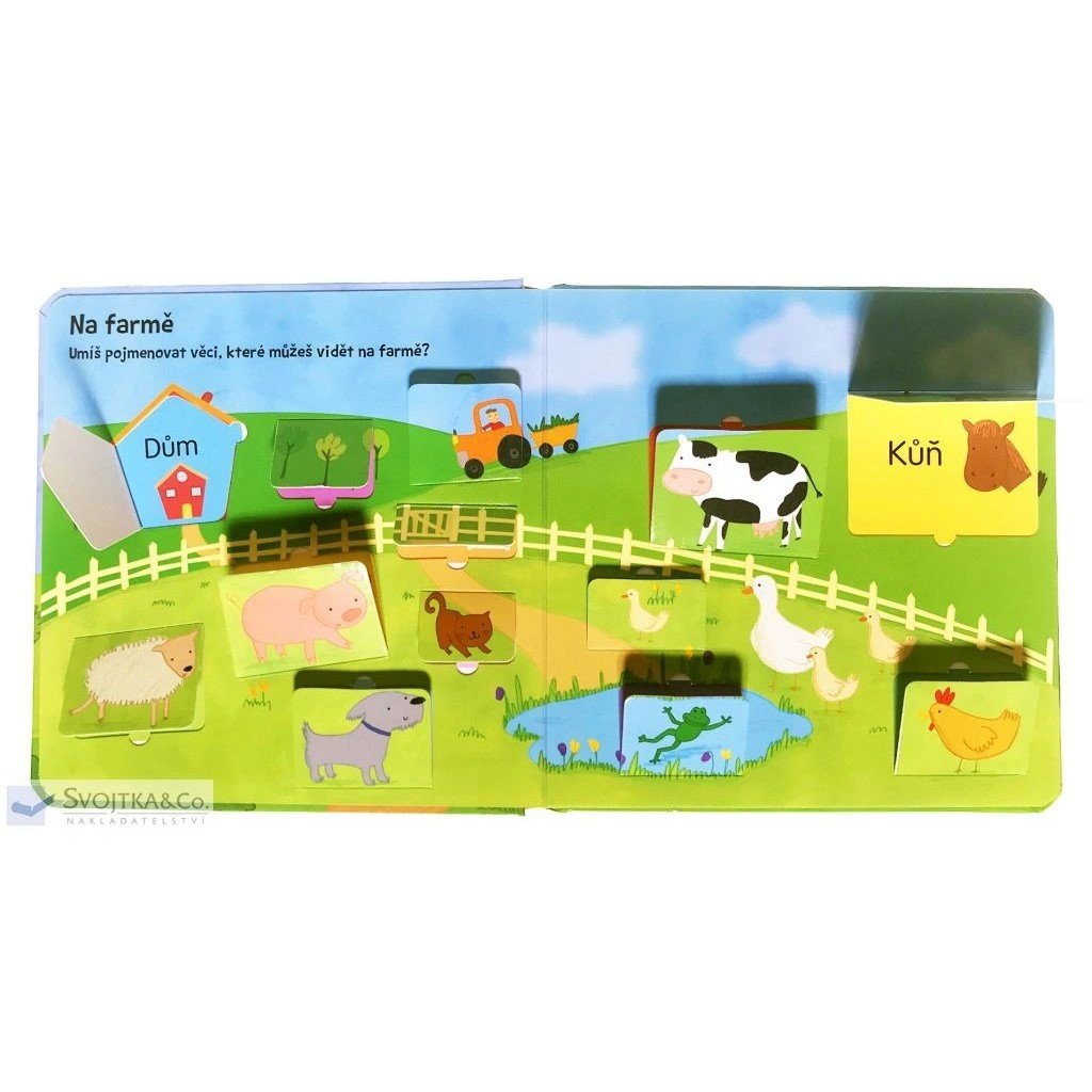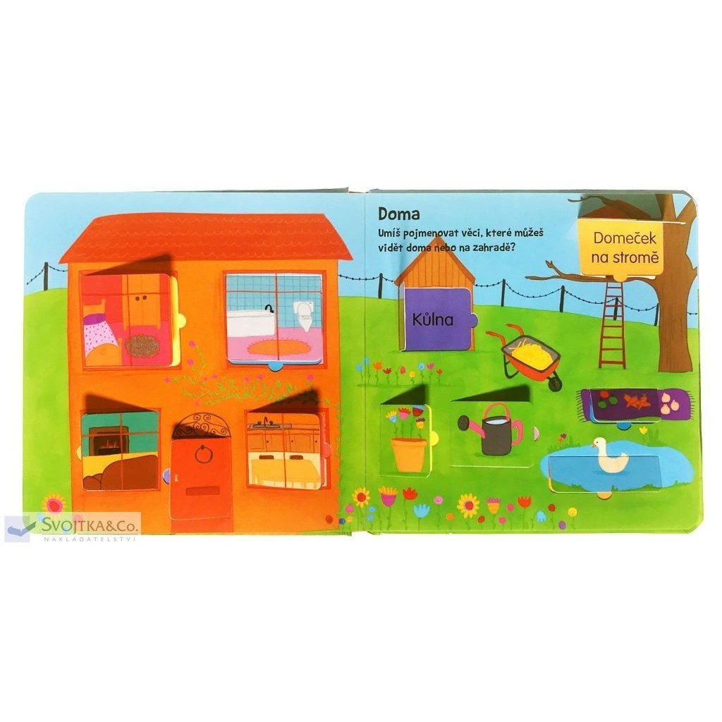 Na farmě, doma, ve škole, u moře... Všude je toho spousta k objevování. Jak se všechny ty báječné věci jmenují? Pomozte dětem s osvojováním prvních slovíček z různých prostředí a tematických oblastí. Při odklápění okének a hledání obrázků si malí čtenáři přirozeně procvičí i jemnou motoriku. Jak se říká členům tvé rodiny? A co jsou všechny ty dobroty, které si tak rád či ráda dáváš ke svačině? Pojmenuj je a zapamatuj si jejich názvy. S touto ilustrovanou knížkou to půjde hravě.