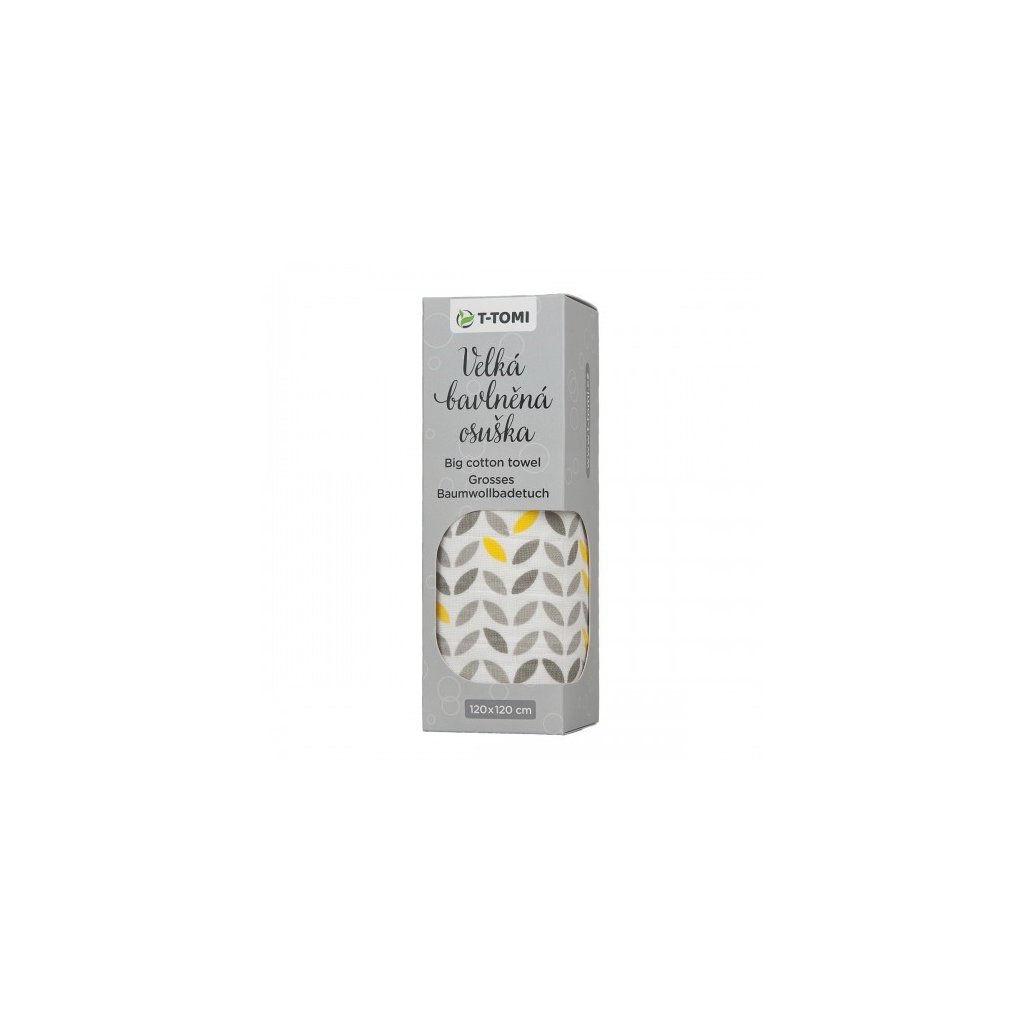 T-TOMI Velká bavlněná tetra osuška Grey Leafs / Šedé lístky