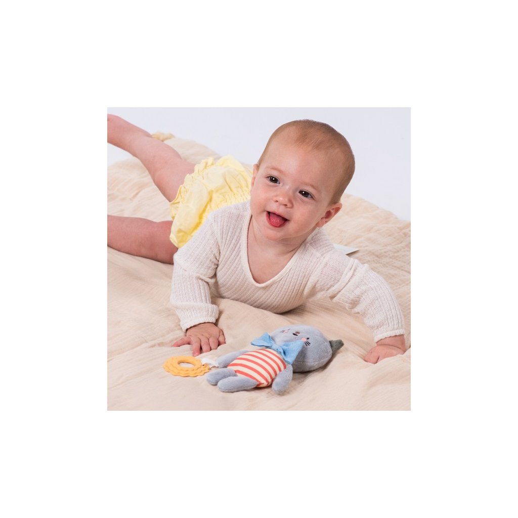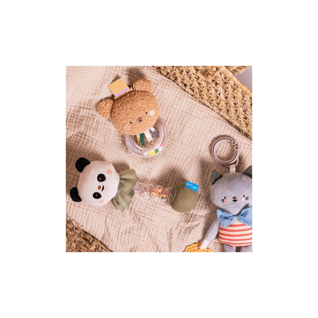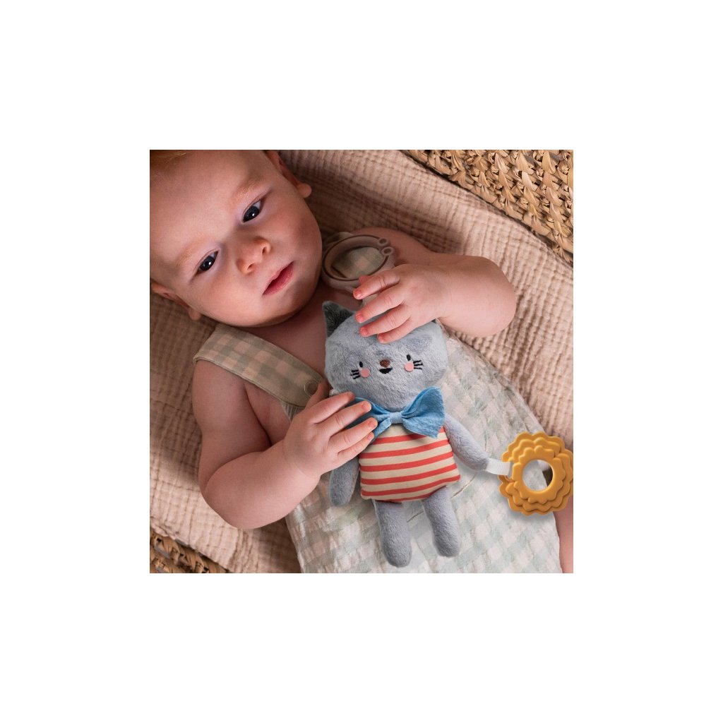 Závěsná plyšová hračka v podobě roztomilé kočičky Clary při pohybu chrastí a při zmáčknutí šustí. Součástí hračky je i pružné kousátko ve tvaru kytičky. Díky závěsnému kroužku hračku snadno připevníte např. na autosedačku či kočárek. Hračka pomáhá rozvíjet jednotlivé smysly, motoriku a emoční inteligenci dítěte. Vhodné pro děti od narození.
