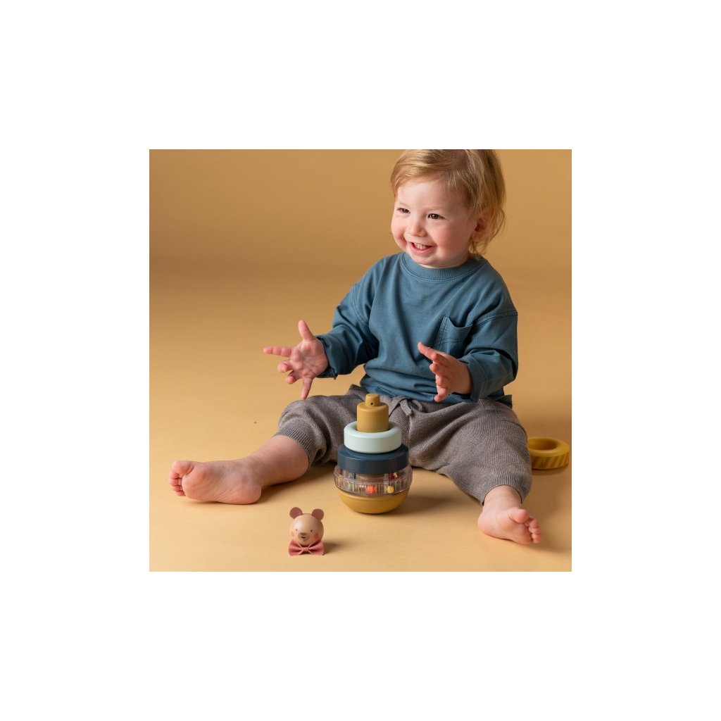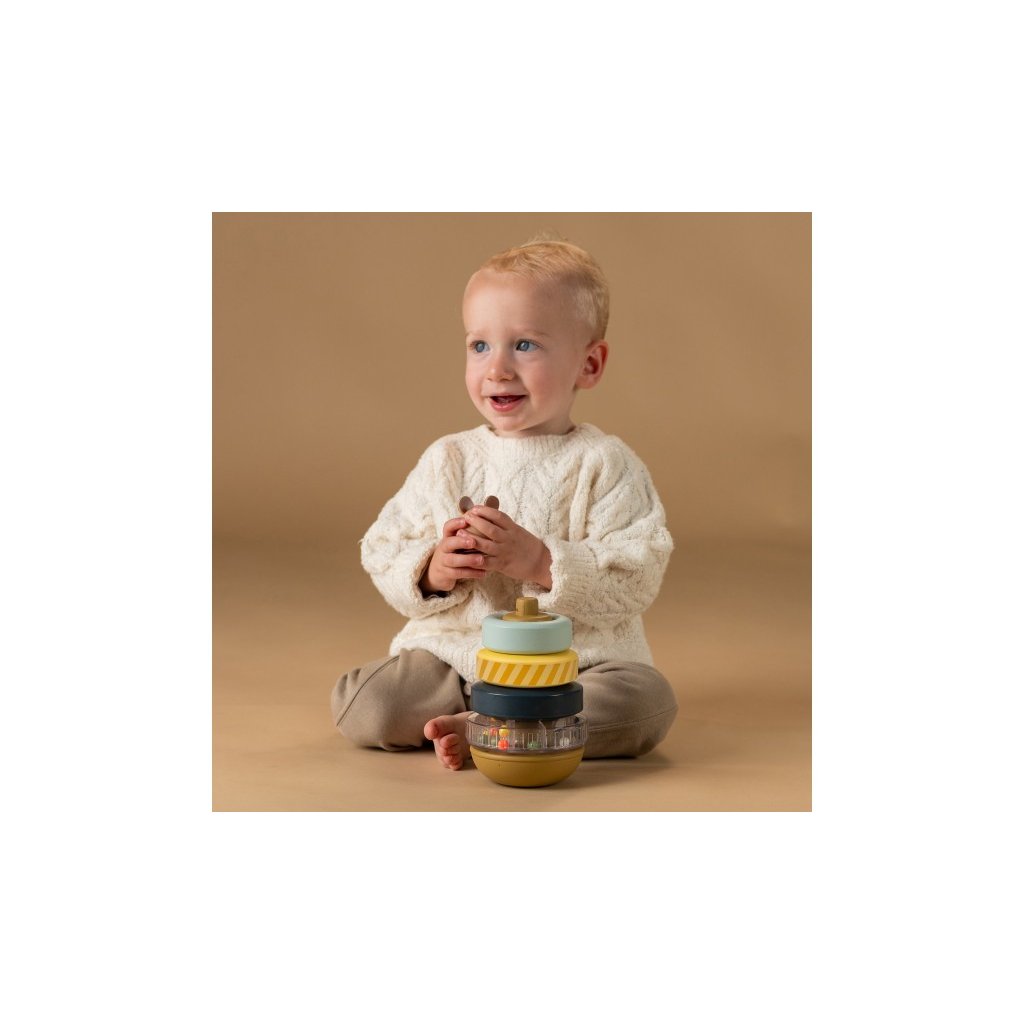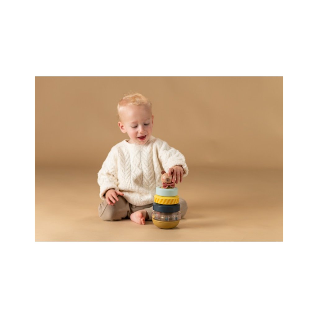 Barevná pyramida s roztomilou medvědí hlavičkou je zábavná a smyslově podnětná hračka, která podporuje jemnou motoriku, koordinaci a první logické uvažování dítěte.