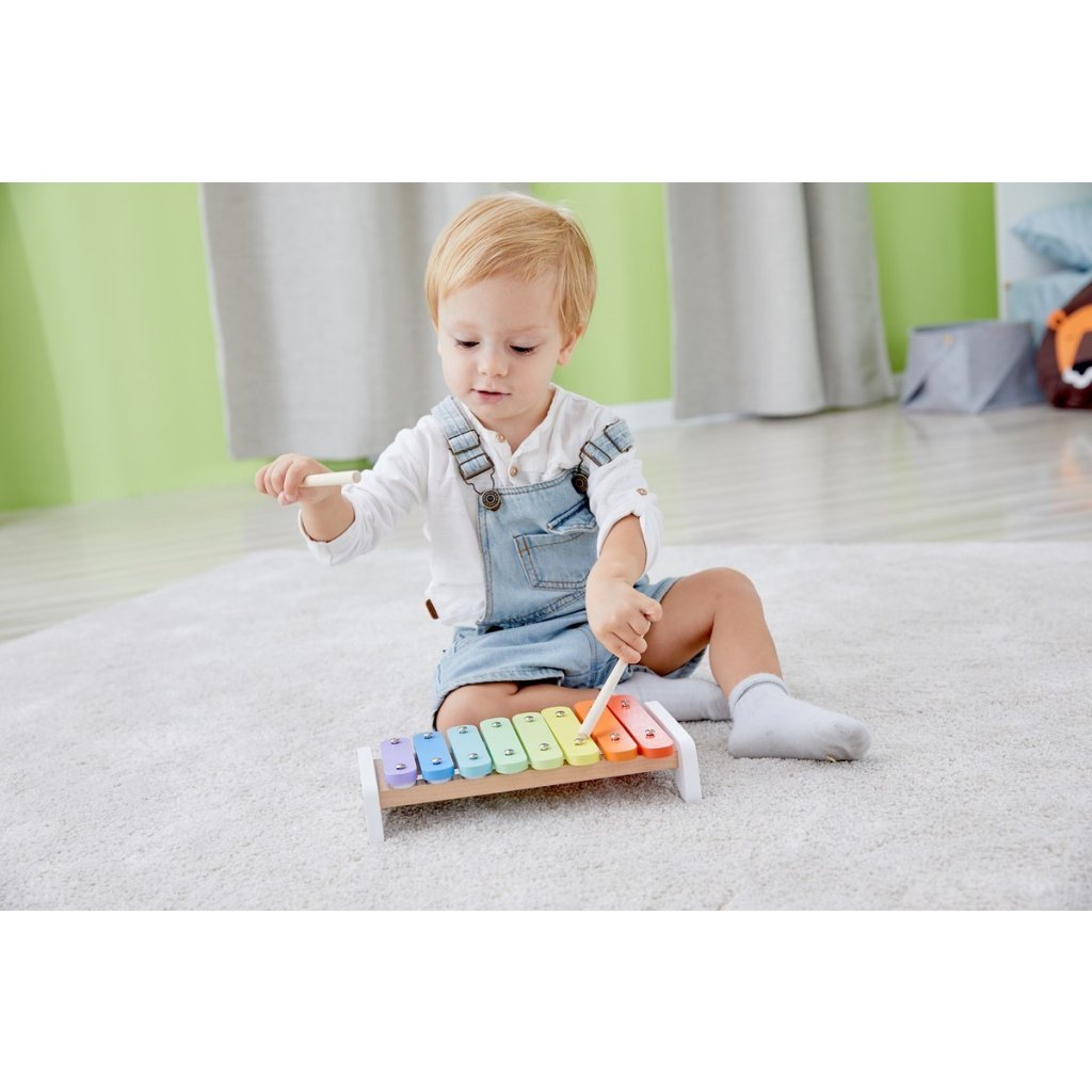 Hudební nástroje děti baví. Podporuje smysly, hudební sluch a u starších dětí často vedou k vlastnímu tvoření skladeb či nápodobě jiných. Veďte děti k hudbě již od malička. Barevný xylofon vám k tomu pomůže. Sada obsahuje xylofon a paličky. Má 8 různých tónů, které jsou odlišeny barvami – pro děti snadno rozpoznatelné. Barvy jsou zdravotně nezávadné.