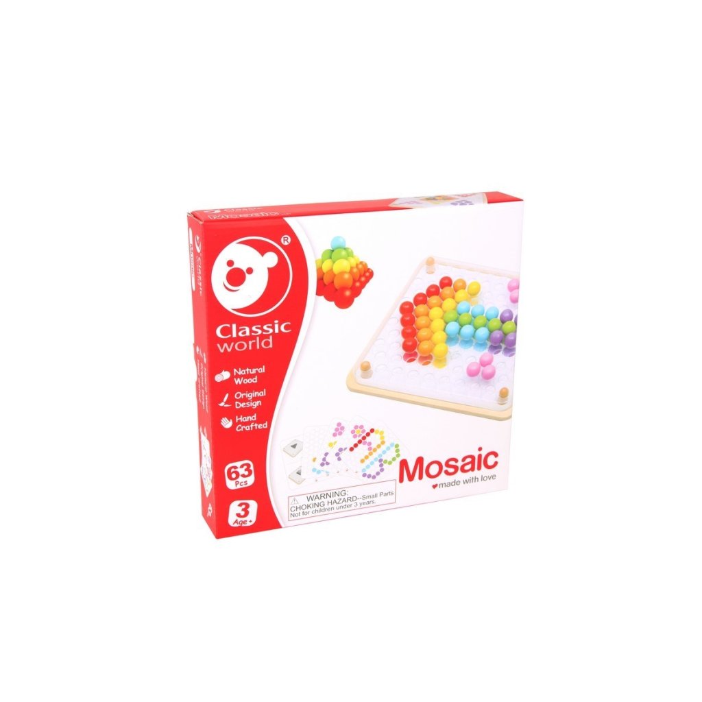 Tato barevná mozaika dětem pomáhá rozvíjet jemnou motoriku a představivost. Vhodné od 3 let. V balení je 63 ks.