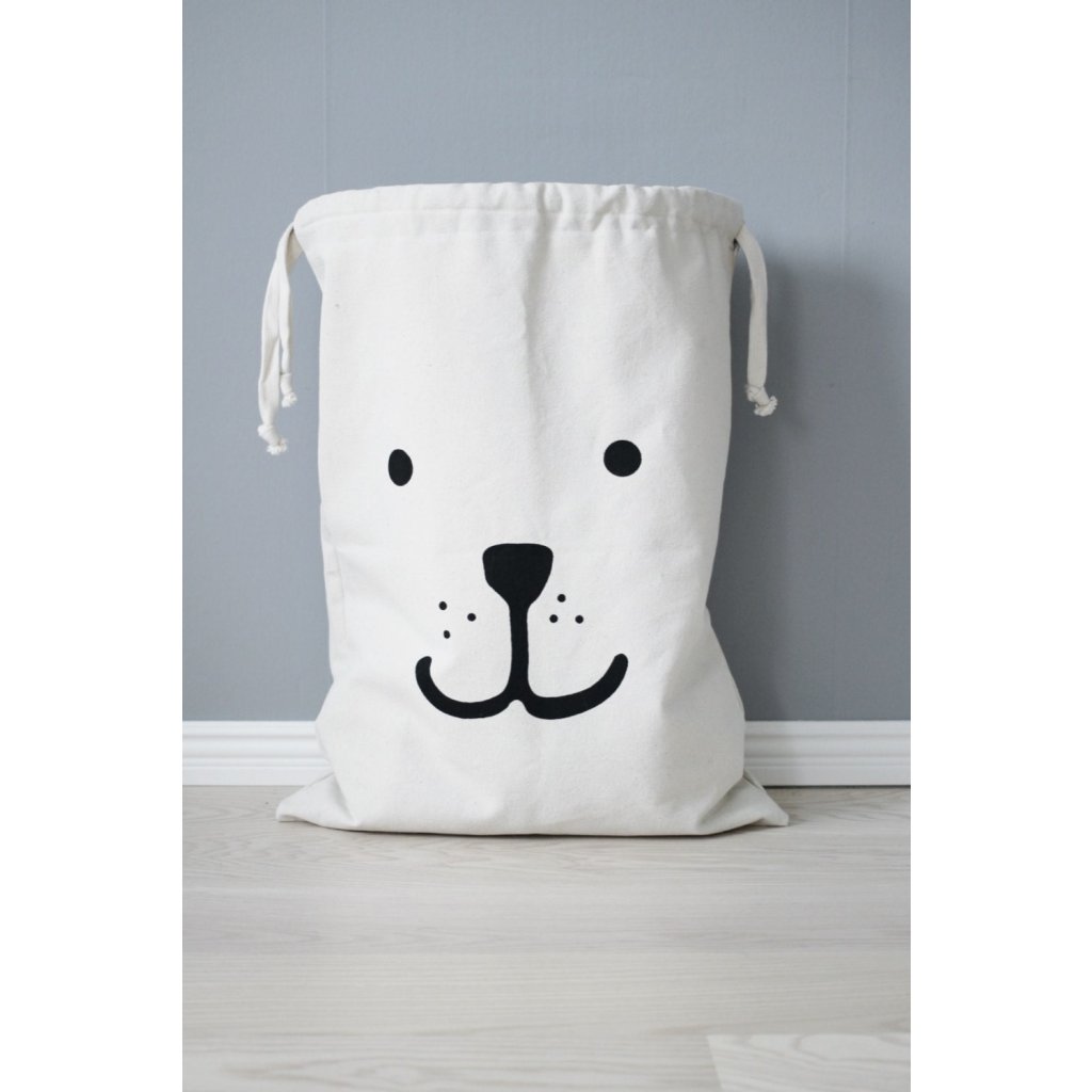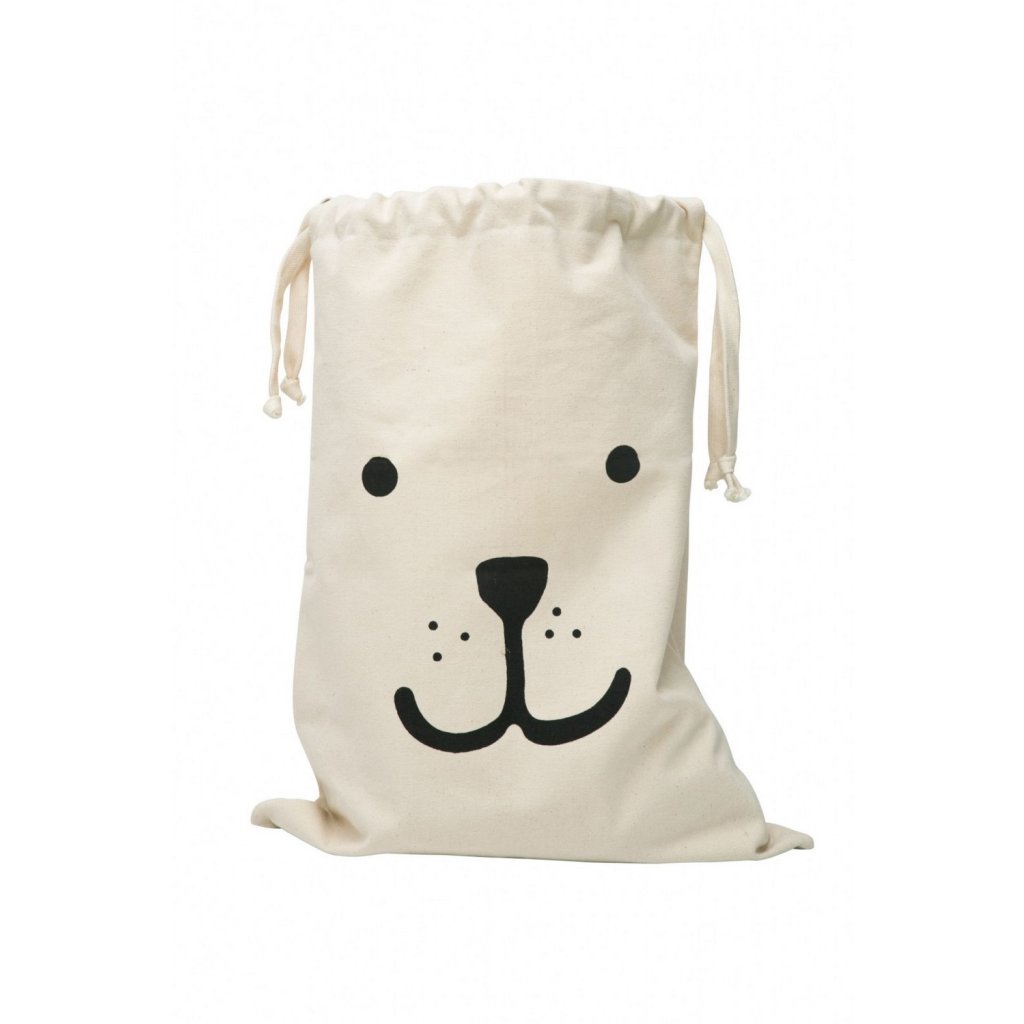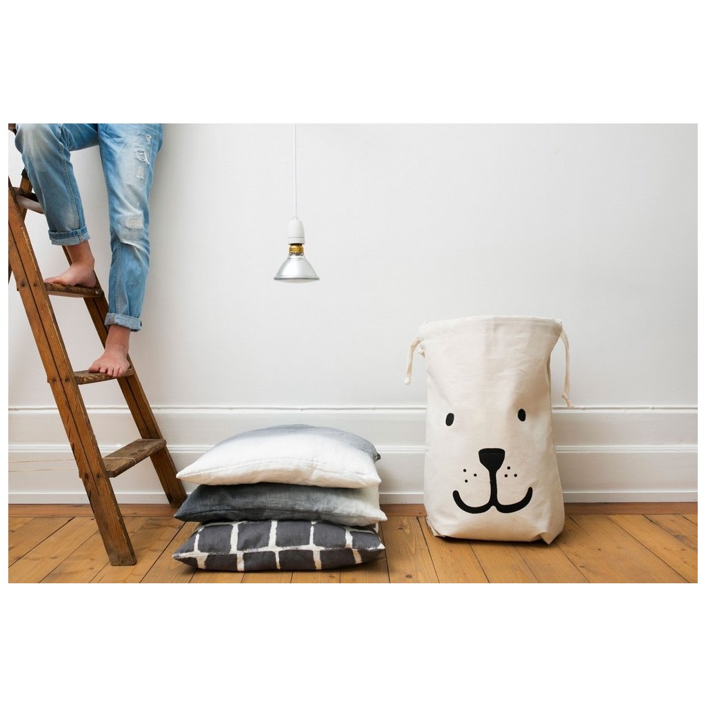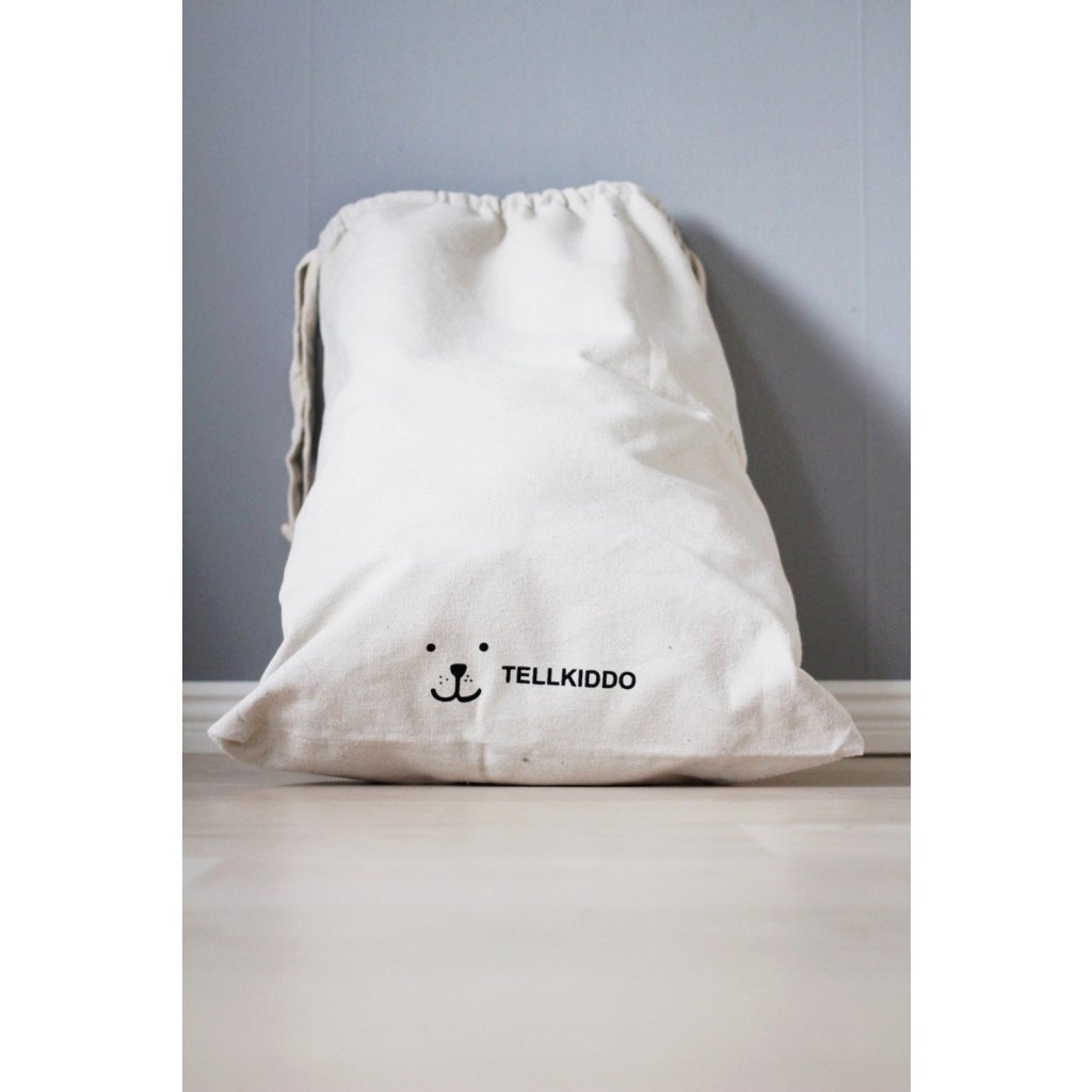 Úložných prostor v pokojíčku není nikdy dost! Pořiďte svému dítěti látkový pytel značky Tellkiddo a uvidíte, že z uklízení se stane zábava. Tento pytel je vyrobený z režného přírodního plátna a je opravdu pevný, díky čemuž bez problému pojme vše potřebné od hraček, přes polštáře a deky až po špinavé oblečení. Praktická tkanička umožňuje jeho stažení a případné zavěšení. Díky minimalistickému černobílému vzhledu zapadne do každého pokojíčku. Pytel má motiv medvídka.