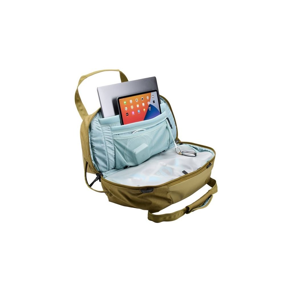 Tato víceúčelová sportovní taška z voskovaného plátna umožňuje oddělení čistého oblečení od špinavého a také bezpečné uložení notebooku a tabletu. Taška Thule Aion 35 l má vnitřní přepážku, která tašku rozděluje na dvě přihrádky a umožňuje tak snadno oddělit věci denní potřeby od outdoorového vybavení. Oddíl s výstelkou z TPU izoluje všechny pachy, nečistoty i vlhkost – to je ideální pro uložení špinavého oblečení nebo vlhkého sportovního vybavení. Taška má také úložný prostor pro 15,6" PC nebo 16" MacBook a pro 12,9" tablet a díky průchozímu pásu ji lze připevnit k teleskopickému madlu kufru na kolečkách.
