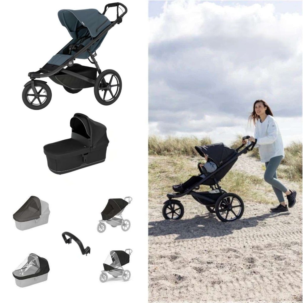 - s Thule korbou nebo adaptérem na dětskou autosedačku (prodává se samostatně) lze používat již od narození