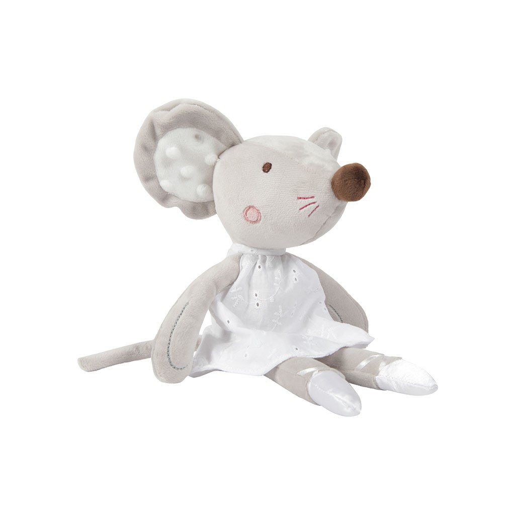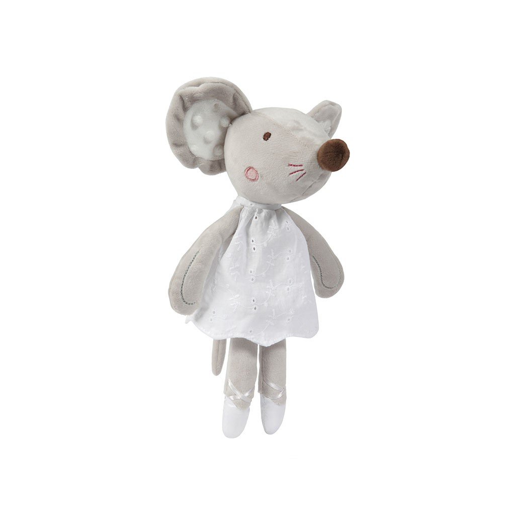 Plyšová myška s baletními piškoty potěší všechny holčičky. Ve chvilkách mimo hraní se stane krásnou dekorací. Myška je velká 27 cm a má šedou barvu. Vhodné od narození. Pouze povrchové čištění.