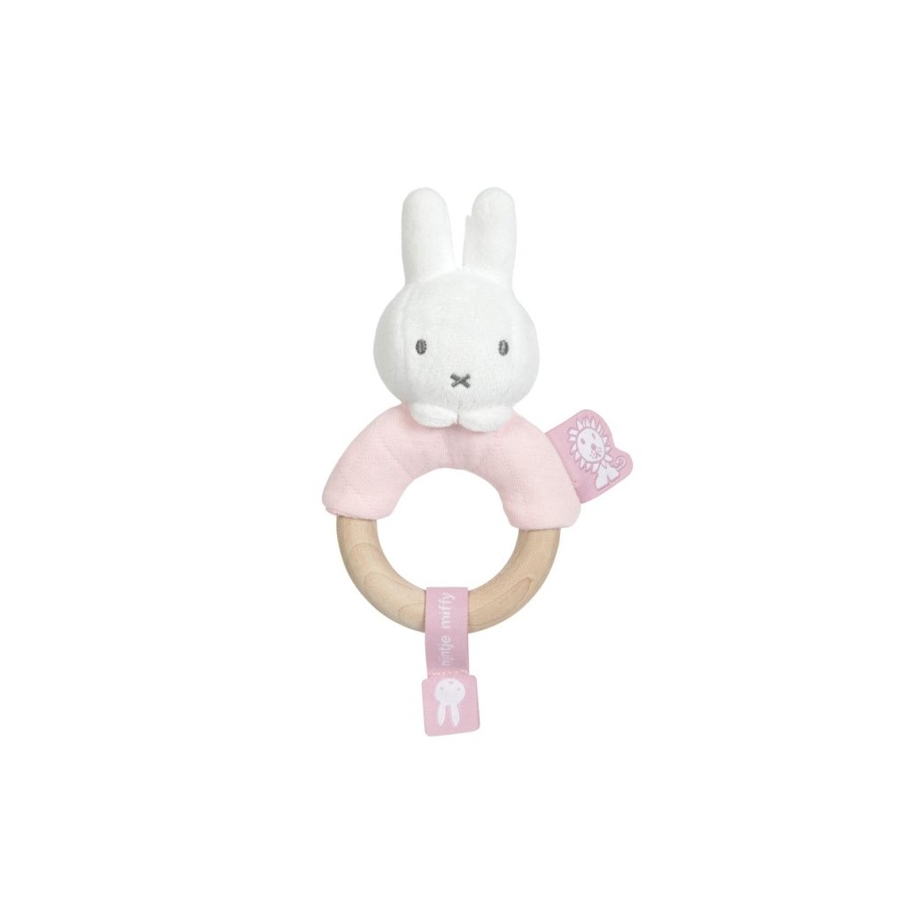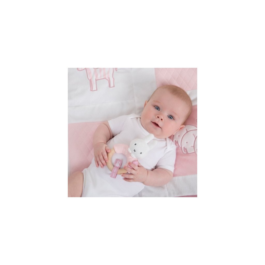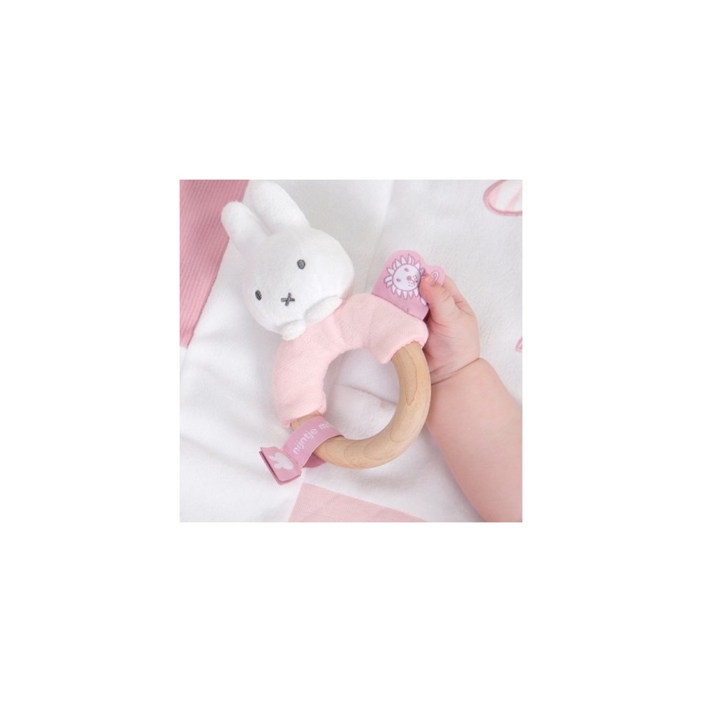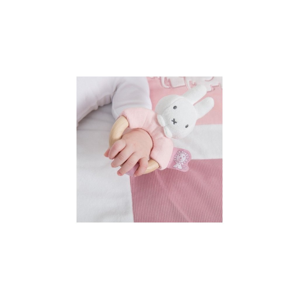 TIAMO Miffy Pink Chrastící zajíček s dřevěným kroužkem