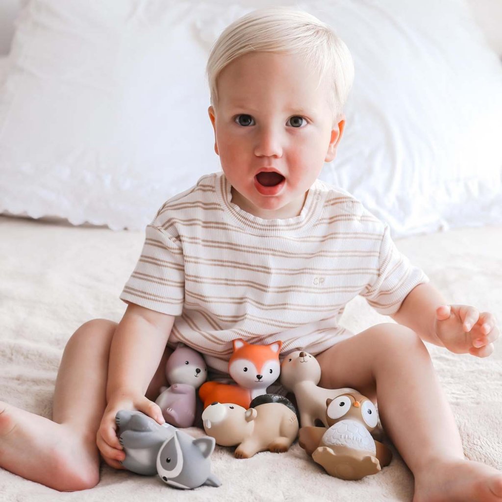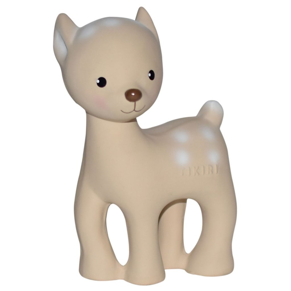 Roztomilá Tikiri zvířátka jsou vyrobena z příjemně jemné přírodní gumy z kaučukového stromu Hevea. Zvířátka nemají žádný otvor, kterým by se dovnitř dostala vlhkost, takže jsou ideální jako hračka do koupele nebo kousátko při prořezávání zoubků. Děti mají rády specifickou příjemnou vůni a chuť přírodní gumy a zaujme je i zvuk chrastítka uvnitř zvířátka.