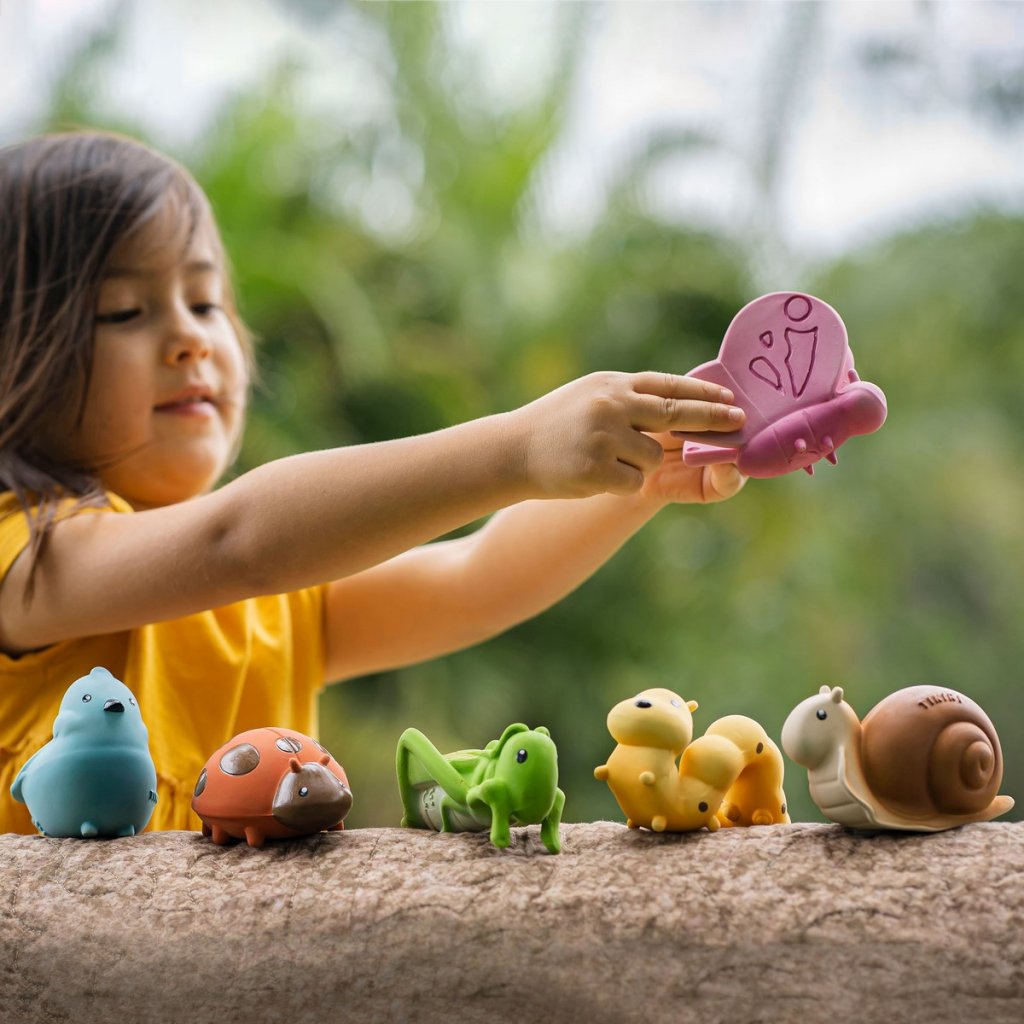 Roztomilá Tikiri zvířátka jsou vyrobena z příjemně jemné měkké přírodní gumy z kaučukového stromu Hevea. Zvířátka nemají žádný otvor, kterým by se dovnitř mohla dostat vlhkost, takže jsou ideální jako hračka do koupele nebo kousátko u prořezávajících se zoubků. Děti mají v oblibě specifickou příjemnou vůni a chuť přírodní gumy a zaujme je i zvuk jemně znějícího chrastítka uvnitř zvířátka. Tikiri Garden Friends jsou roztomilí kamarádi ze zahrádky, zvířátka, která jsou všem malým objevitelům dobře známá.