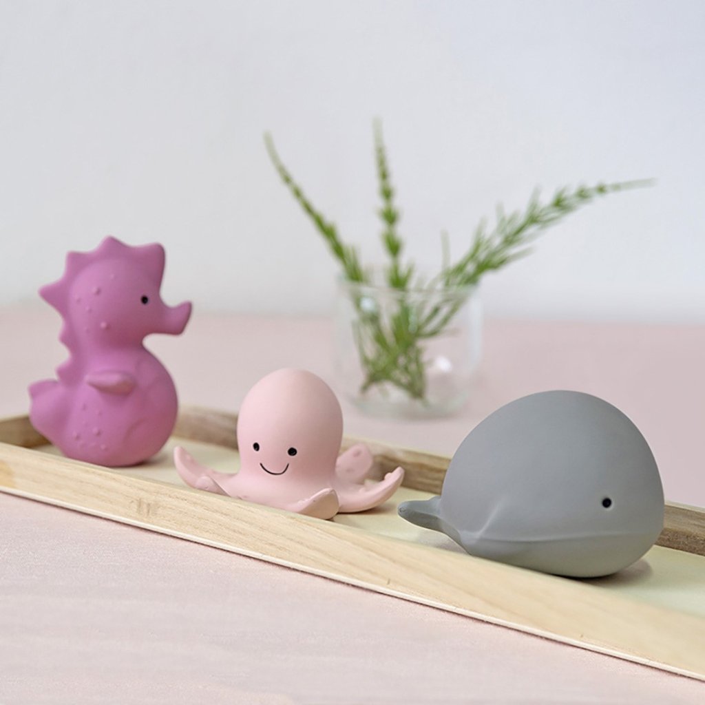 Roztomilá Tikiri zvířátka jsou vyrobena z příjemně jemné přírodní gumy z kaučukového stromu Hevea. Zvířátka nemají žádný otvor, kterým by se dovnitř dostala vlhkost, takže jsou ideální jako hračka do koupele nebo kousátko při prořezávání zoubků. Děti mají rády specifickou příjemnou vůni a chuť přírodní gumy a zaujme je i zvuk chrastítka uvnitř zvířátka.
