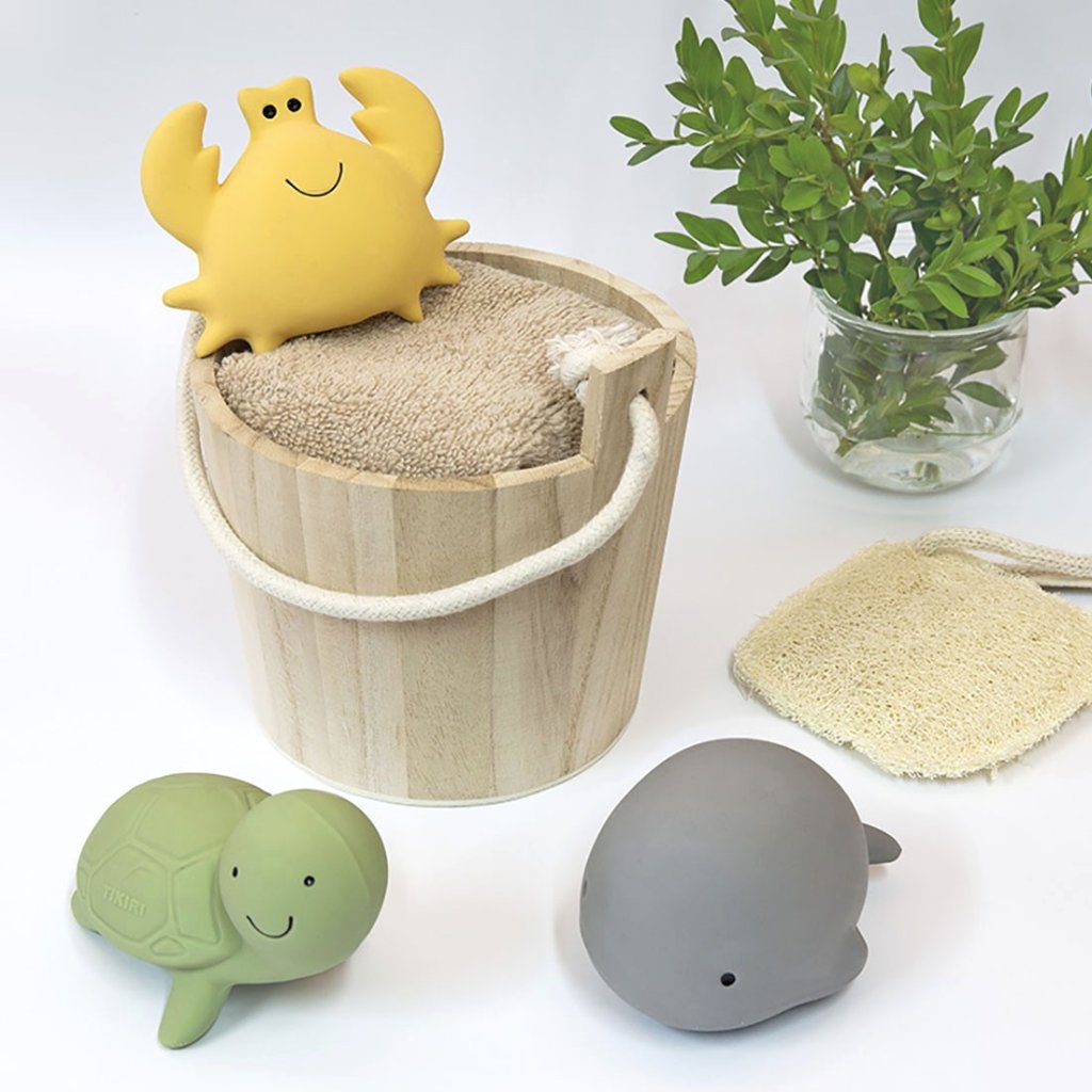 Roztomilá Tikiri zvířátka jsou vyrobena z příjemně jemné přírodní gumy z kaučukového stromu Hevea. Zvířátka nemají žádný otvor, kterým by se dovnitř dostala vlhkost, takže jsou ideální jako hračka do koupele nebo kousátko při prořezávání zoubků. Děti mají rády specifickou příjemnou vůni a chuť přírodní gumy a zaujme je i zvuk chrastítka uvnitř zvířátka.