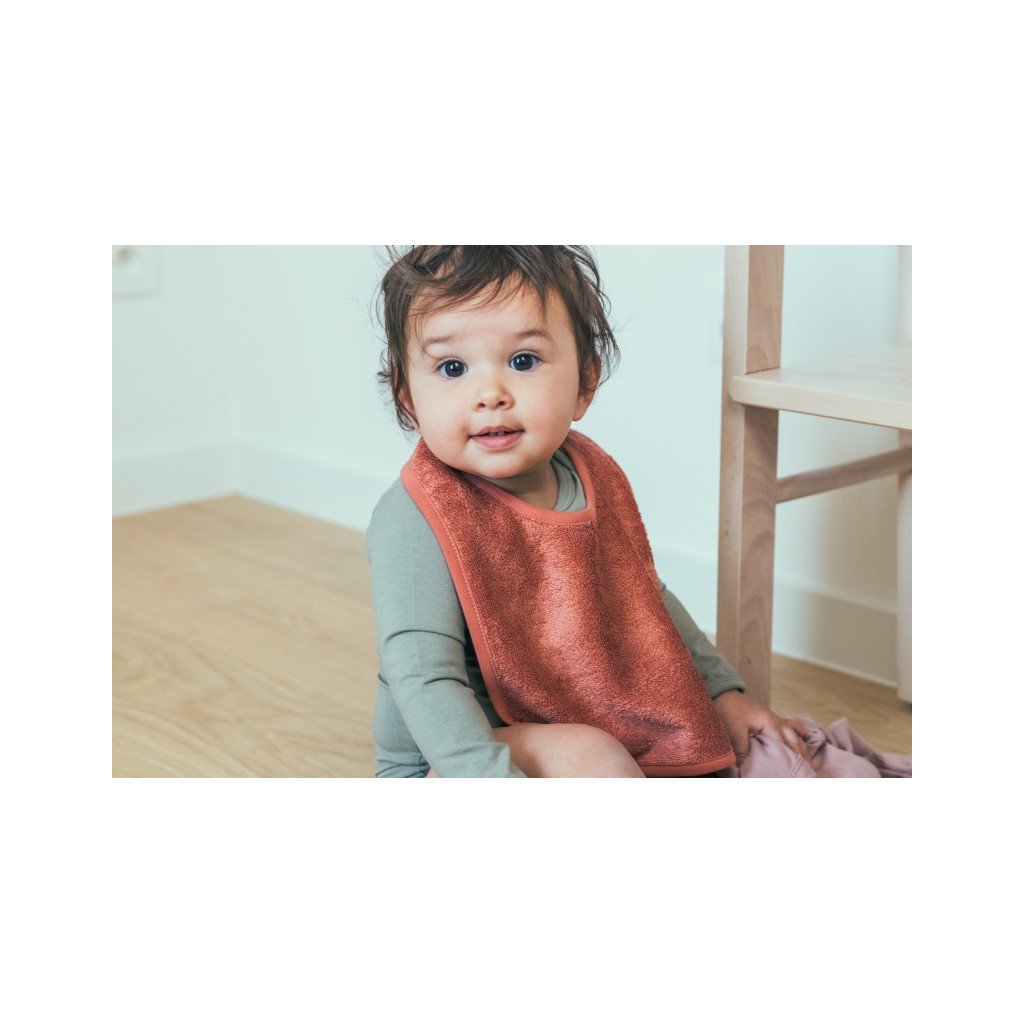 Super šikovný bambusový bryndák je vhodný k ochraně oděvu při jídle. Díky dvěma patentkám má dvě velikosti.