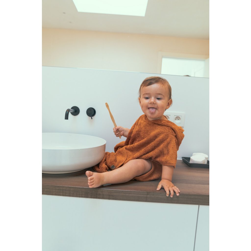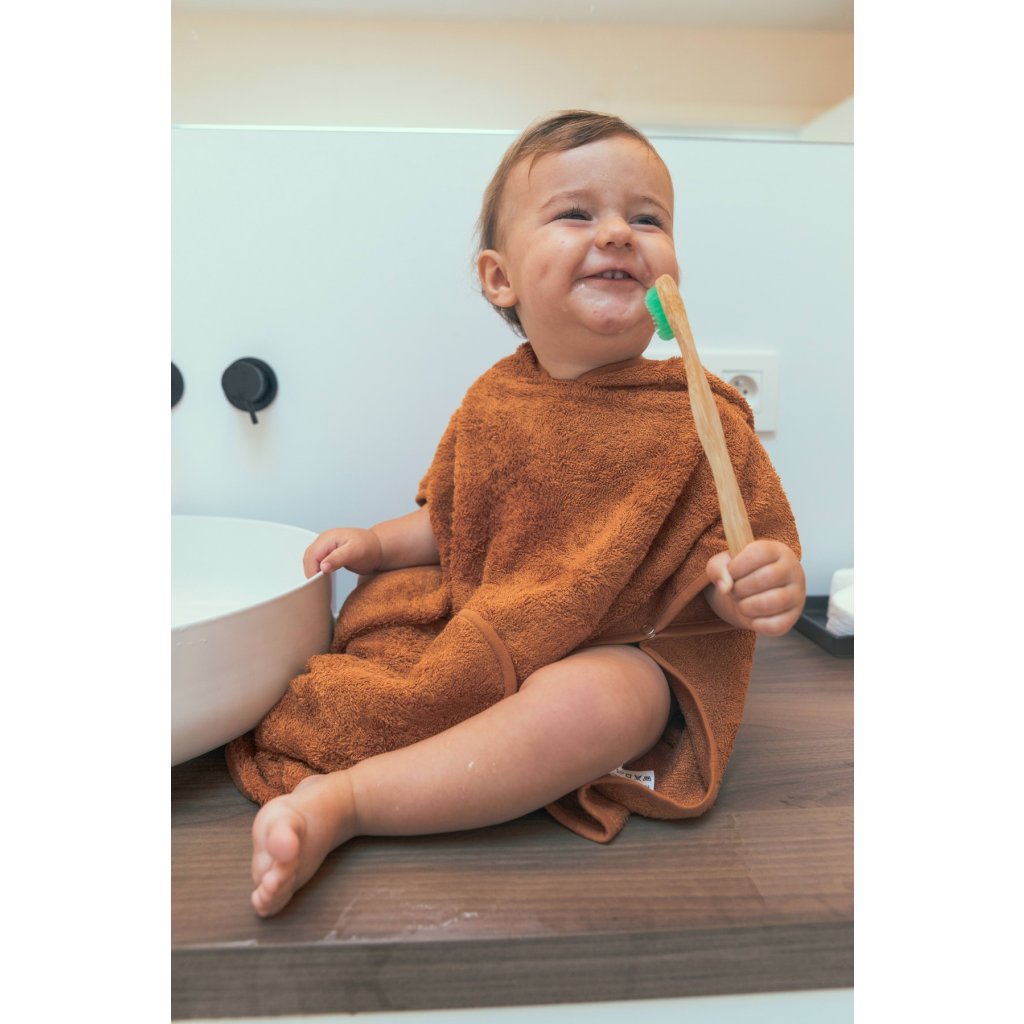 Krásné pončo s kapucí má v podpaží druk na zapínání. Díky jedinečnému složení bambusové tkaniny je mimořádně vhodné pro zabalení vašeho batolete ihned po koupání. Unikátní bambusová tkanina, která absorbuje o 60% více než bavlněné froté, zajišťuje, že vaše dítě rychle schne a není mu zima.