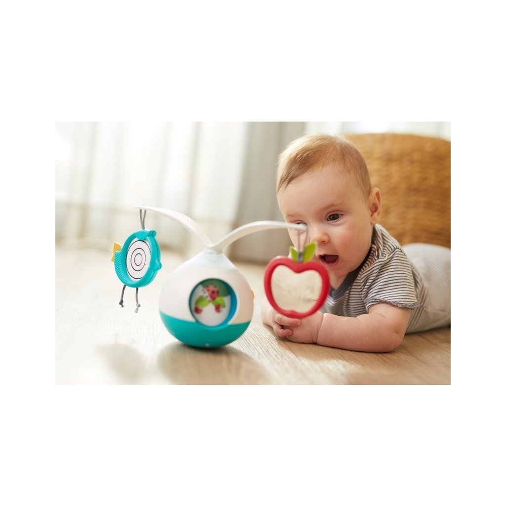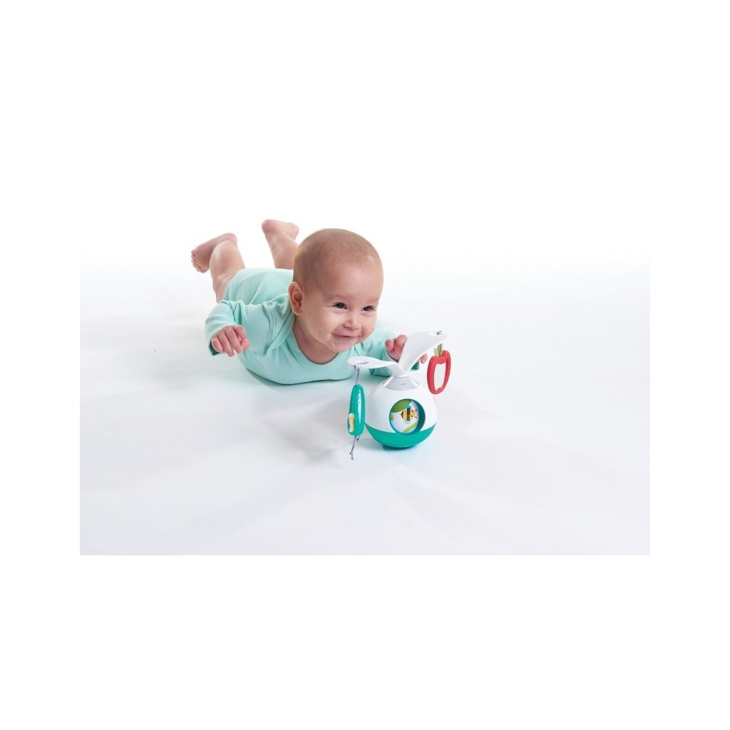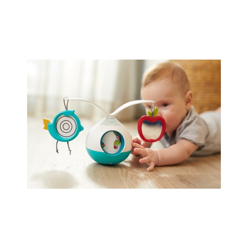 Unikátní hudební box s hudbou, světýlky a otočnými rameny podněcuje dítě ke hře na bříšku. Pro malého kojence, který tráví většinu dne i noci ležením na zádech, je důležité, aby trávil několikrát denně čas ležením na bříšku a takzvaným “pasením koníčků”. Poloha na bříšku přináší děťátku jiný pohled na svět a posiluje krční a zádové svaly, které později umožňují dítěti začít se přetáčet, lézt a sedět bez opory. Hudební box nabízí dítěti aktivity, které ho udrží déle spokojené v poloze na bříšku. Na ramenou, otáčejících se o 360°, upoutá pozornost dítěte zavěšené oboustranné zrcátko i výrazné hologramové obrázky. Obrázky zvířátek se pohybují i v okénku hudebního boxu. Hračka umožňuje nastavit automatické přehrávání až 30 minut melodií spolu se světýlky. Další variantou je pouštění hudby a světýlek dotykem, dítě se tak učí příčině a následku. Hračku je možné používat i bez hudby. Kromě postavení hračky na zem pro hru na bříšku je možné ji s pomocí klipu zavěsit např. na kočárek.
