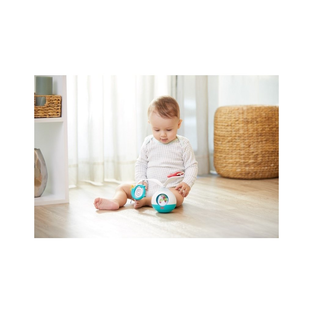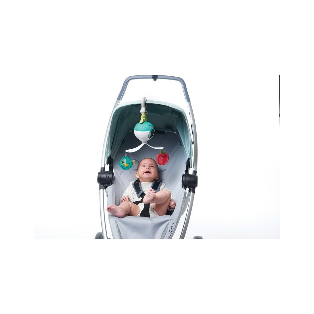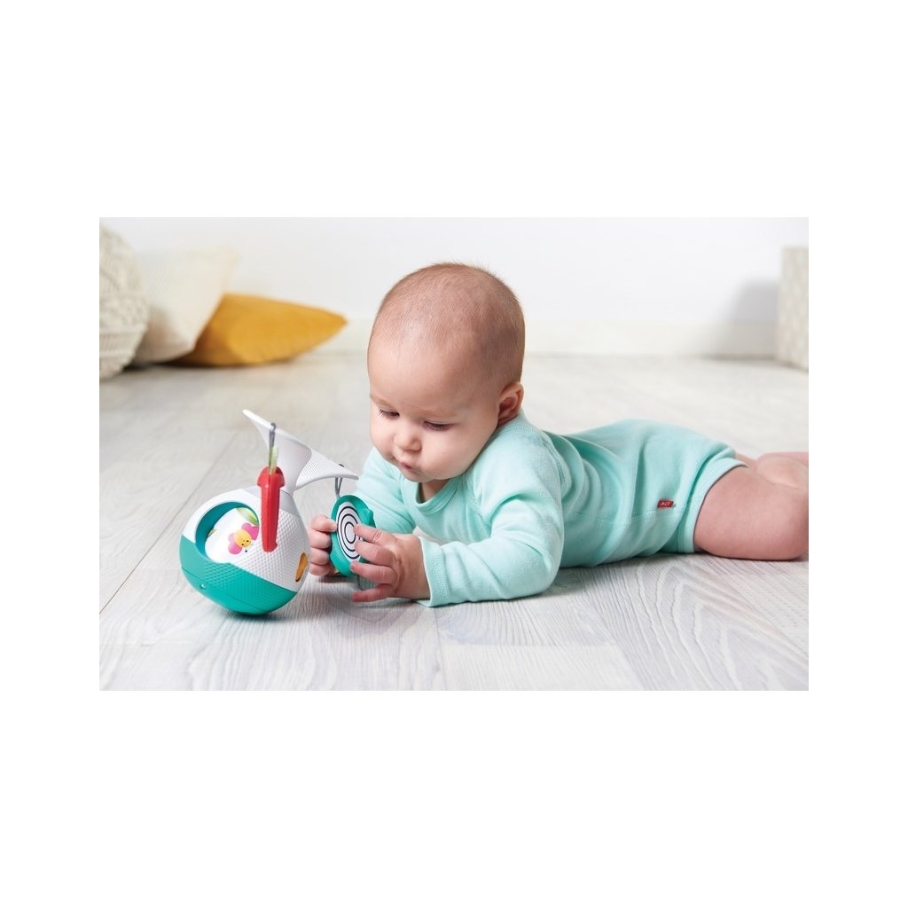Unikátní hudební box s hudbou, světýlky a otočnými rameny podněcuje dítě ke hře na bříšku. Pro malého kojence, který tráví většinu dne i noci ležením na zádech, je důležité, aby trávil několikrát denně čas ležením na bříšku a takzvaným “pasením koníčků”. Poloha na bříšku přináší děťátku jiný pohled na svět a posiluje krční a zádové svaly, které později umožňují dítěti začít se přetáčet, lézt a sedět bez opory. Hudební box nabízí dítěti aktivity, které ho udrží déle spokojené v poloze na bříšku. Na ramenou, otáčejících se o 360°, upoutá pozornost dítěte zavěšené oboustranné zrcátko i výrazné hologramové obrázky. Obrázky zvířátek se pohybují i v okénku hudebního boxu. Hračka umožňuje nastavit automatické přehrávání až 30 minut melodií spolu se světýlky. Další variantou je pouštění hudby a světýlek dotykem, dítě se tak učí příčině a následku. Hračku je možné používat i bez hudby. Kromě postavení hračky na zem pro hru na bříšku je možné ji s pomocí klipu zavěsit např. na kočárek.
