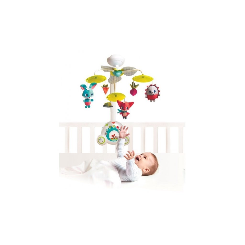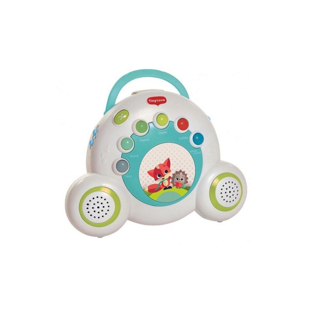 Hudební kolotoč Tiny Love s odnímatelným hudebním přehrávačem pro utišení i zabavení vašeho dítěte v postýlce. Hudební box se dvěma kvalitními reproduktory a nočním světýlkem nabízí 18 různých melodií v 6 různých kategoriích a celkové délce 40 minut. Možnost nastavení hlasitosti hudby. Zavěšené otáčející se postavičky zvířátek upoutají pozornost dítěte v postýlce. Kolotoč je vhodný od narození do cca 5 měsíců věku. Od 5 měsíců je možné používat hudební box samostatně jako přenosný přehrávač.